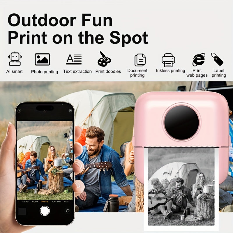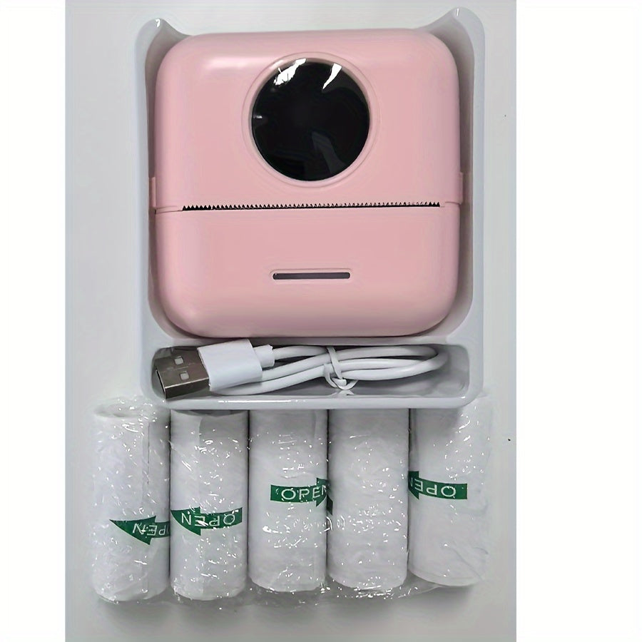 Портативный мини термопринтер с USB зарядкой, однопользовательская функция, настольная печать этикеток, беспроводное соединение и монохромный вывод.