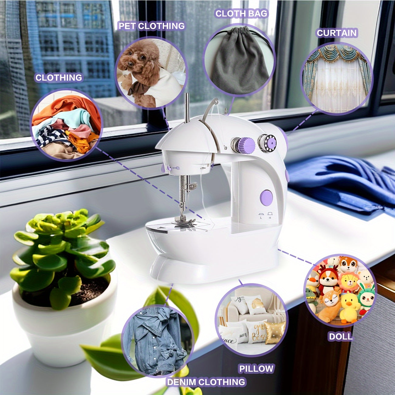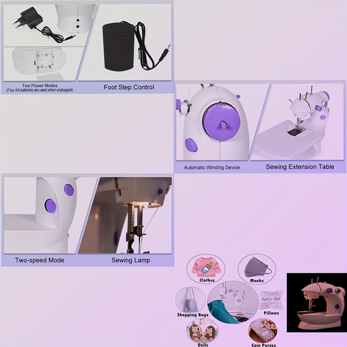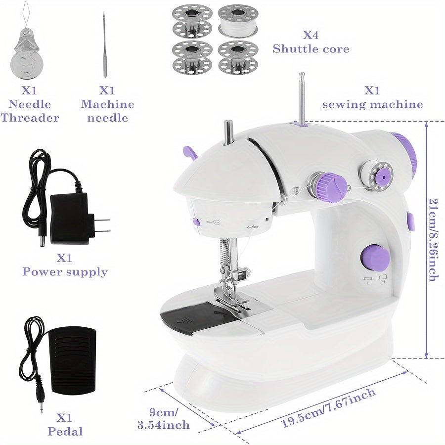 Портативный набор швейной машины с LED-освещением, идеален для DIY-проектов, путешествий и домашнего использования. В комплекте вилка на 220-240В.