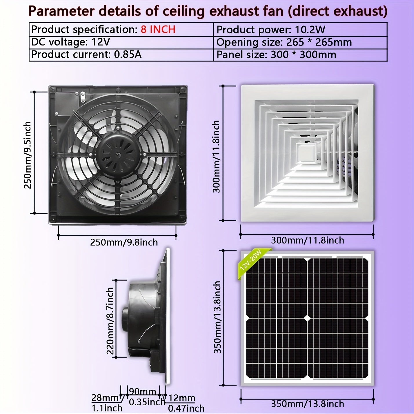 Портативный солнечный вентилятор 20,32 см 17 Вт для кемпинга, походов, автодомов, вентиляции теплиц