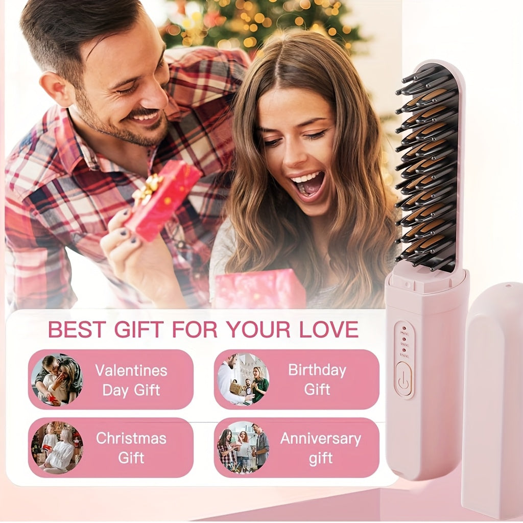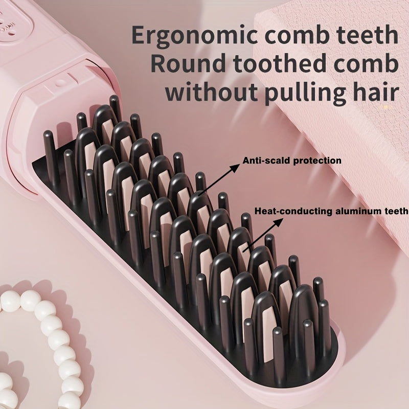 Портативная беспроводная щетка для выпрямления волос с USB-заряжаемой литиевой батареей, технологией защиты от ожогов, для влажного/сухого использования и функцией отрицательных ионов - идеально подходит для дома, путешествий и использования на улице.