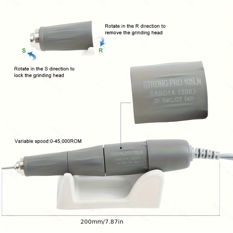 Мощная микромоторная машинка для маникюра с ручкой для полировки на 35K и 45K об/мин.