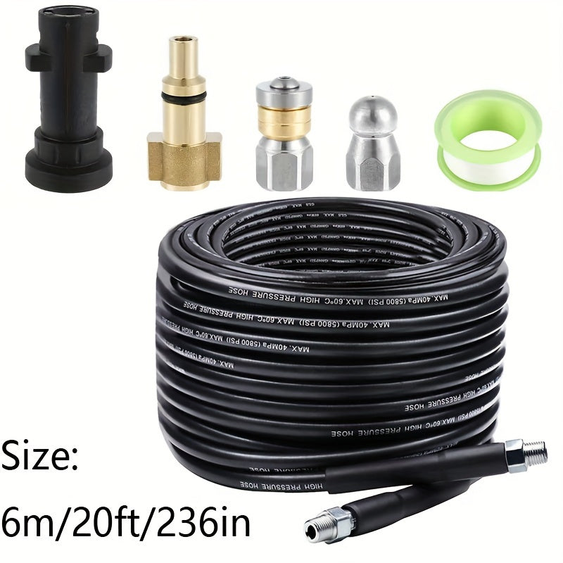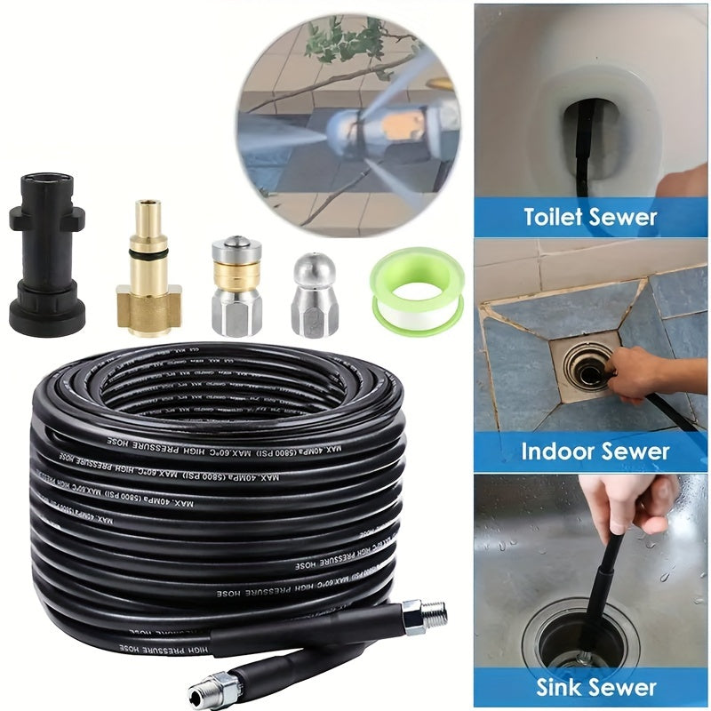 Комплект мощных промывочных устройств для канализации с насадкой 1/4 дюйма для очистки труб и водостоков от 6 м до 45 м