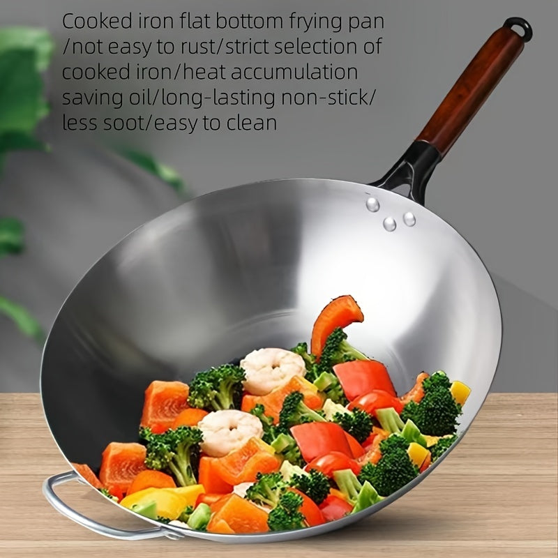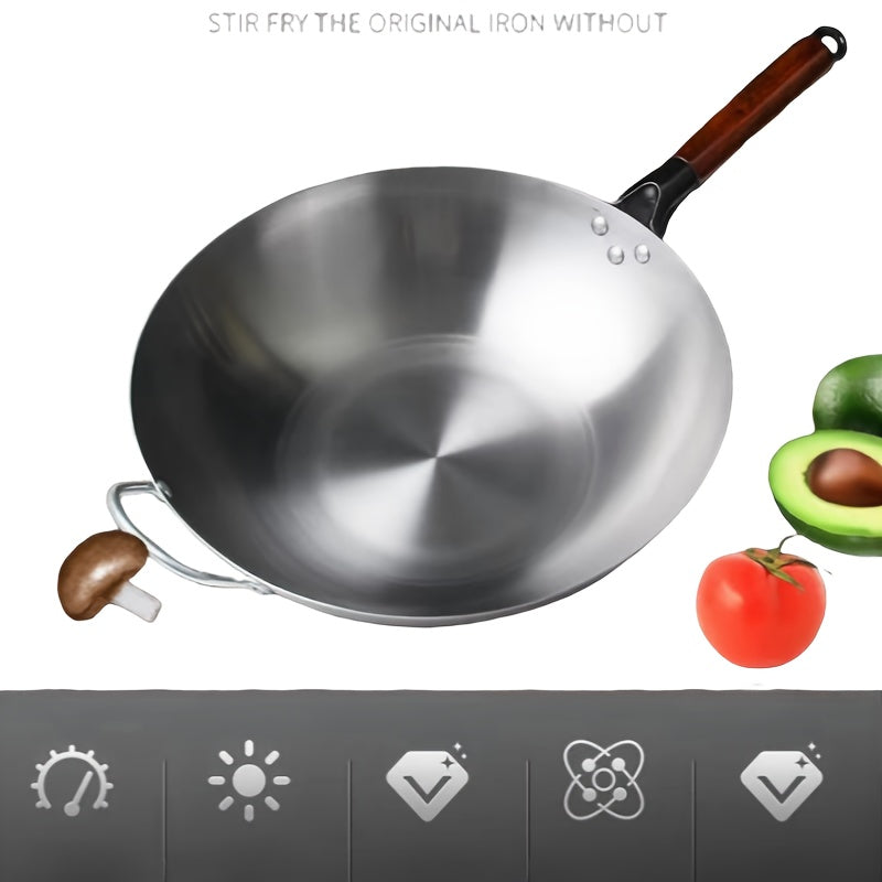 Премиум чугунный вок, 32,0 см - Ржавчине не подвержен, без покрытия, антипригарная посуда, подходящая для всех типов плит - Идеально подходит для дома, ресторана и приготовления пищи на открытом воздухе