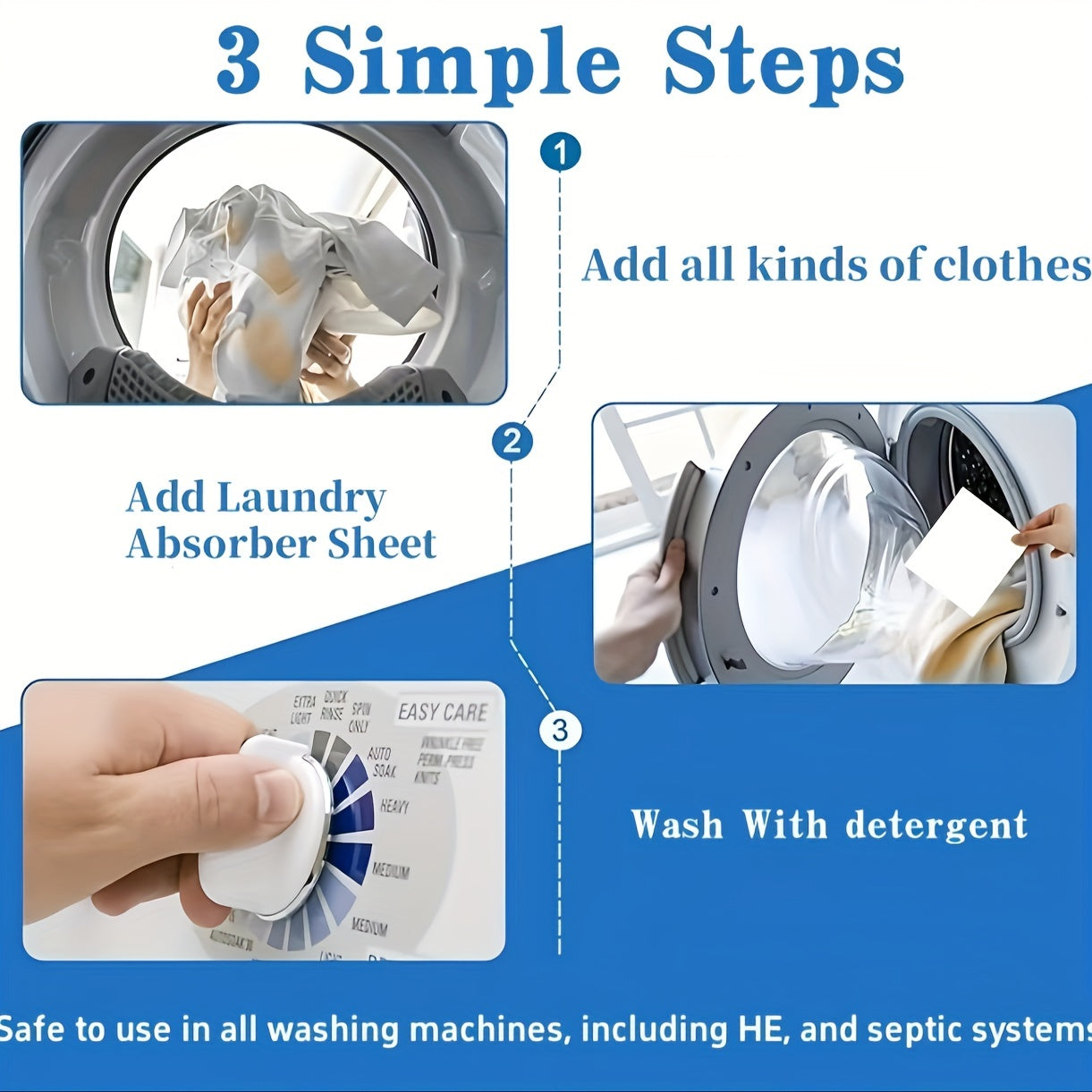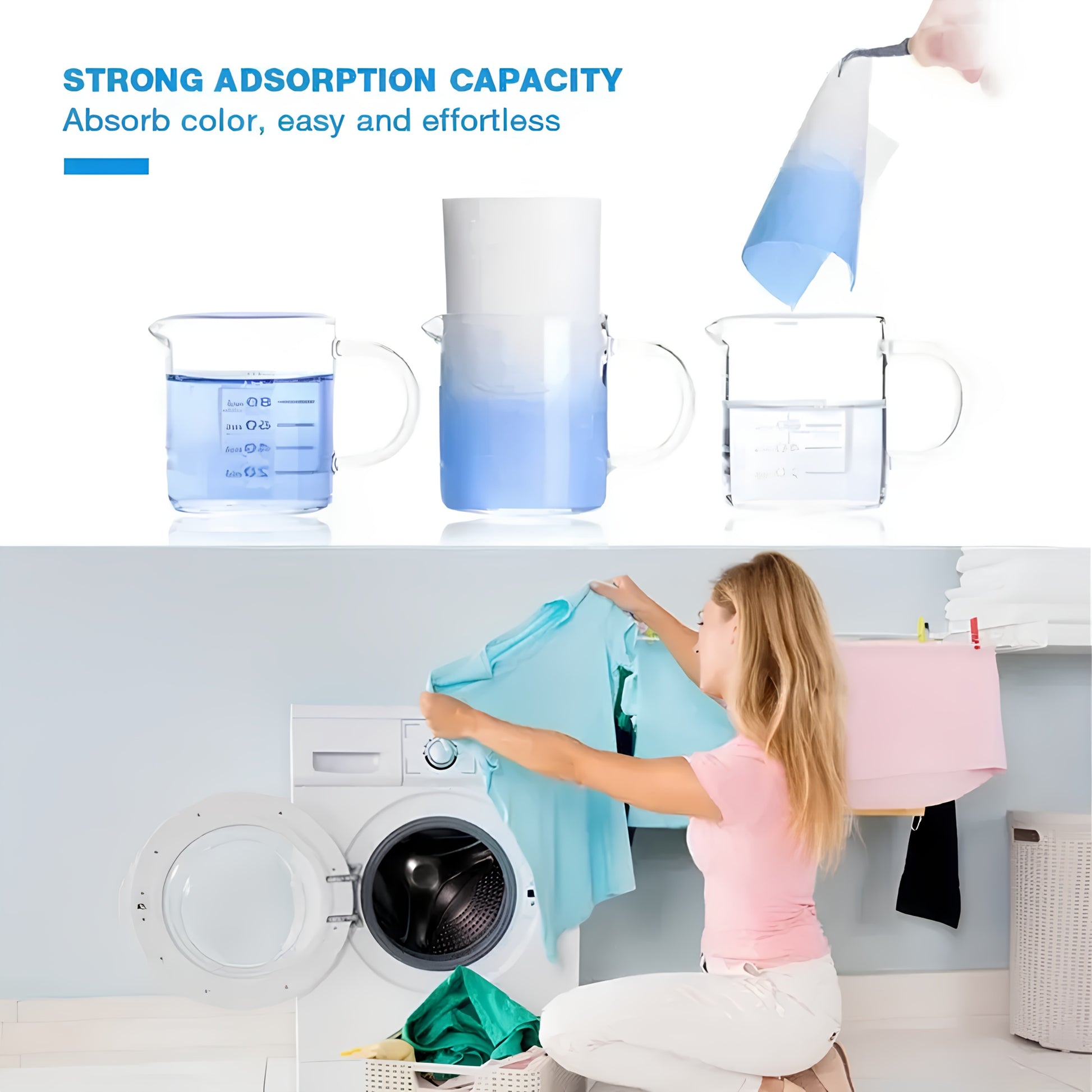 Предотвращайте выцветание и осветляйте одежду с помощью 50 листов для стирки Color Catcher, изготовленных из нетканого материала, позволяющих смешанные стирки.