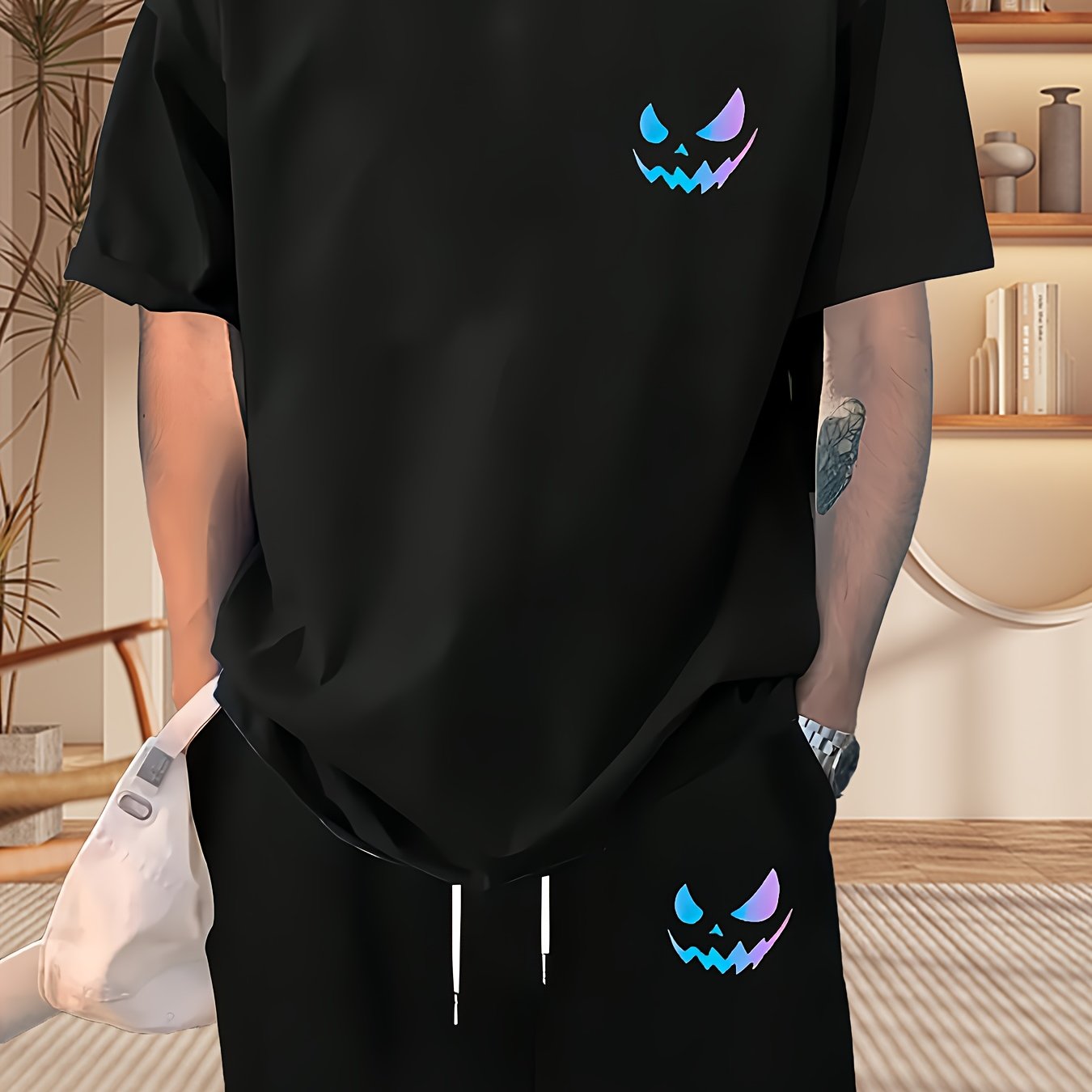 Мужской повседневный пижамный комплект: футболка с коротким рукавом и шорты на шнурке, весна-лето, спорт