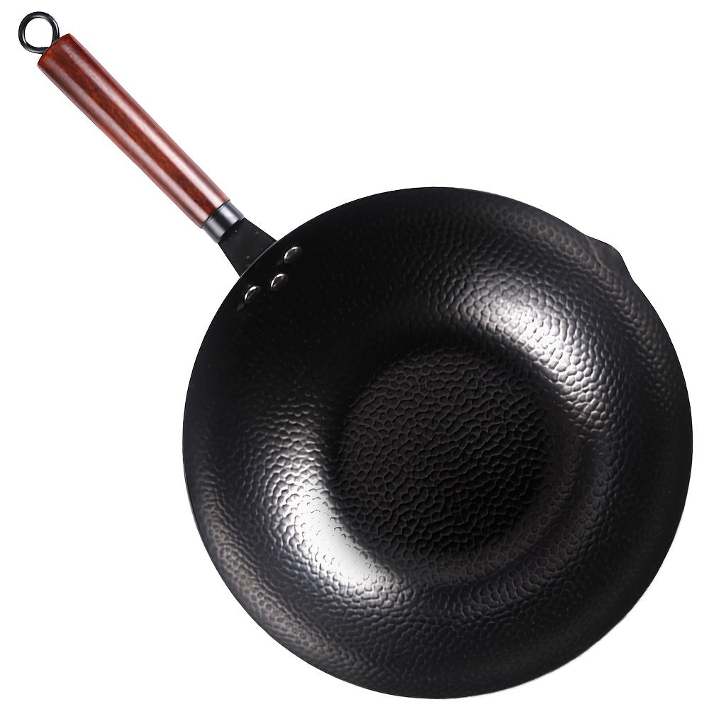 Чугунная вок-сковорода 32 см в традиционном китайском стиле с молотковым покрытием, подходит для индукционных, газовых, электрических и керамических плит