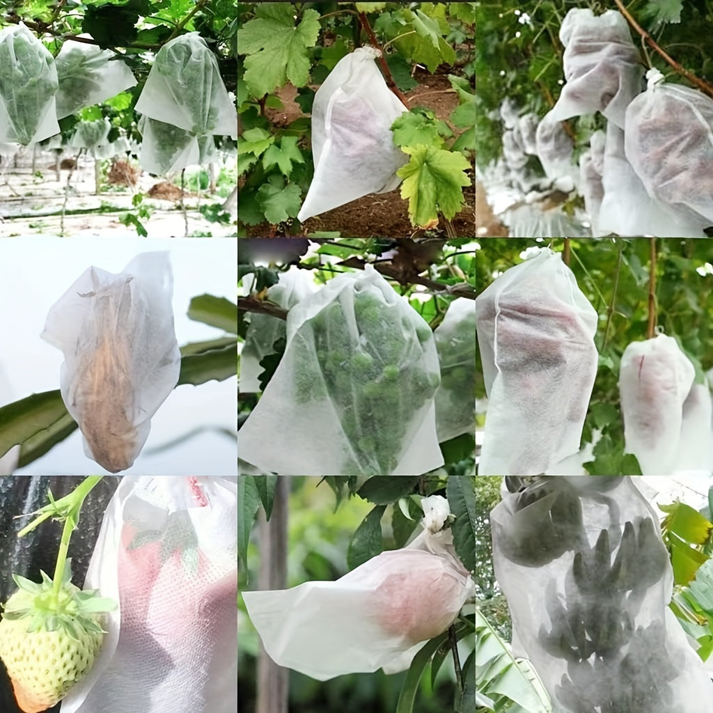 Защитите свои садовые растения от насекомых и птиц с помощью 100 мешочков для защиты фруктов на завязках. Эти сетчатые покрытия являются барьером для винограда, манго и овощей и не требуют