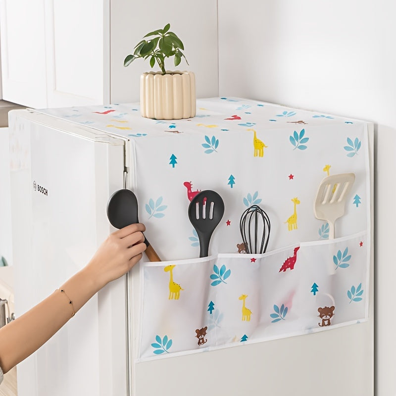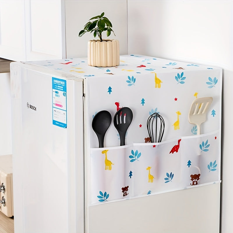 Защитите свой холодильник стильно с помощью этого водонепроницаемого чехла из PEVA с дизайном под животный принт. Держите свою кухню организованной и свободной от пыли с многофункциональным органайзером для хранения, который комплектуется висячей сумкой.