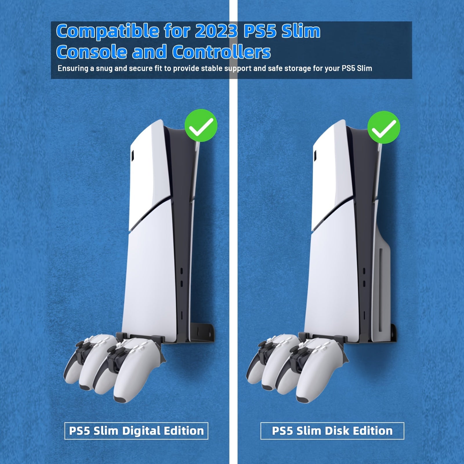 Крепление для стенда PS5 Slim для консоли и контроллеров, вертикальная стойка из стали с креплением на винтах.