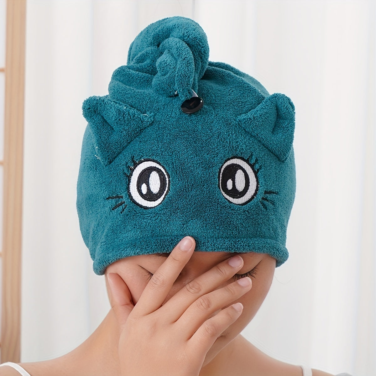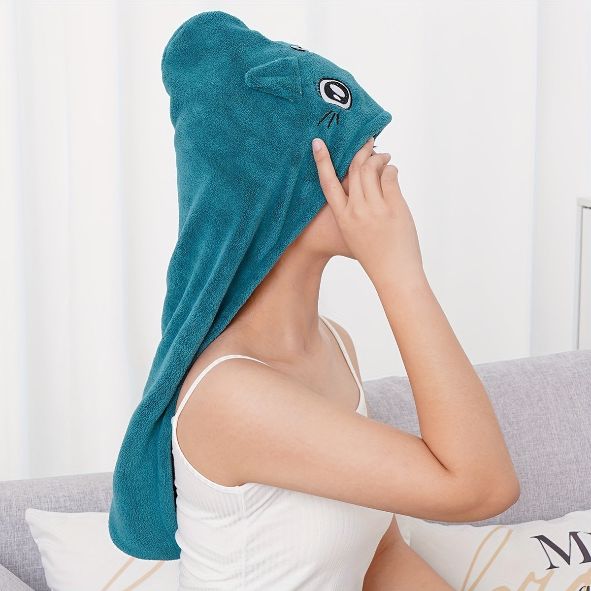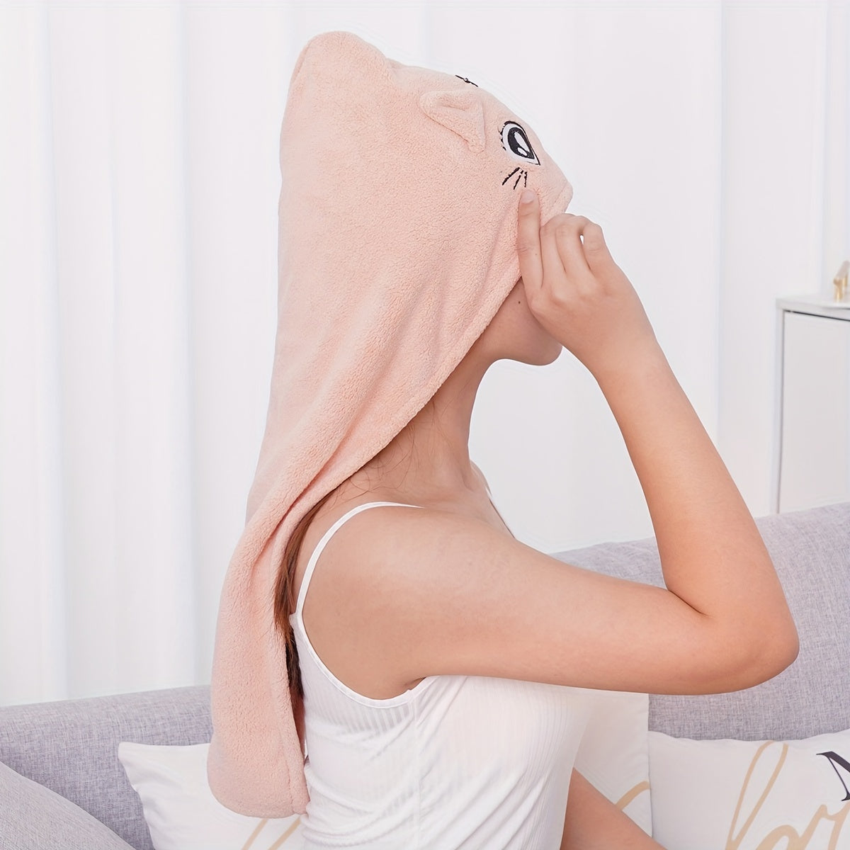 Быстросохнущее полотенце для волос с милым дизайном кота для женщин, изготовлено из ультрамягкого кораллового флиса.