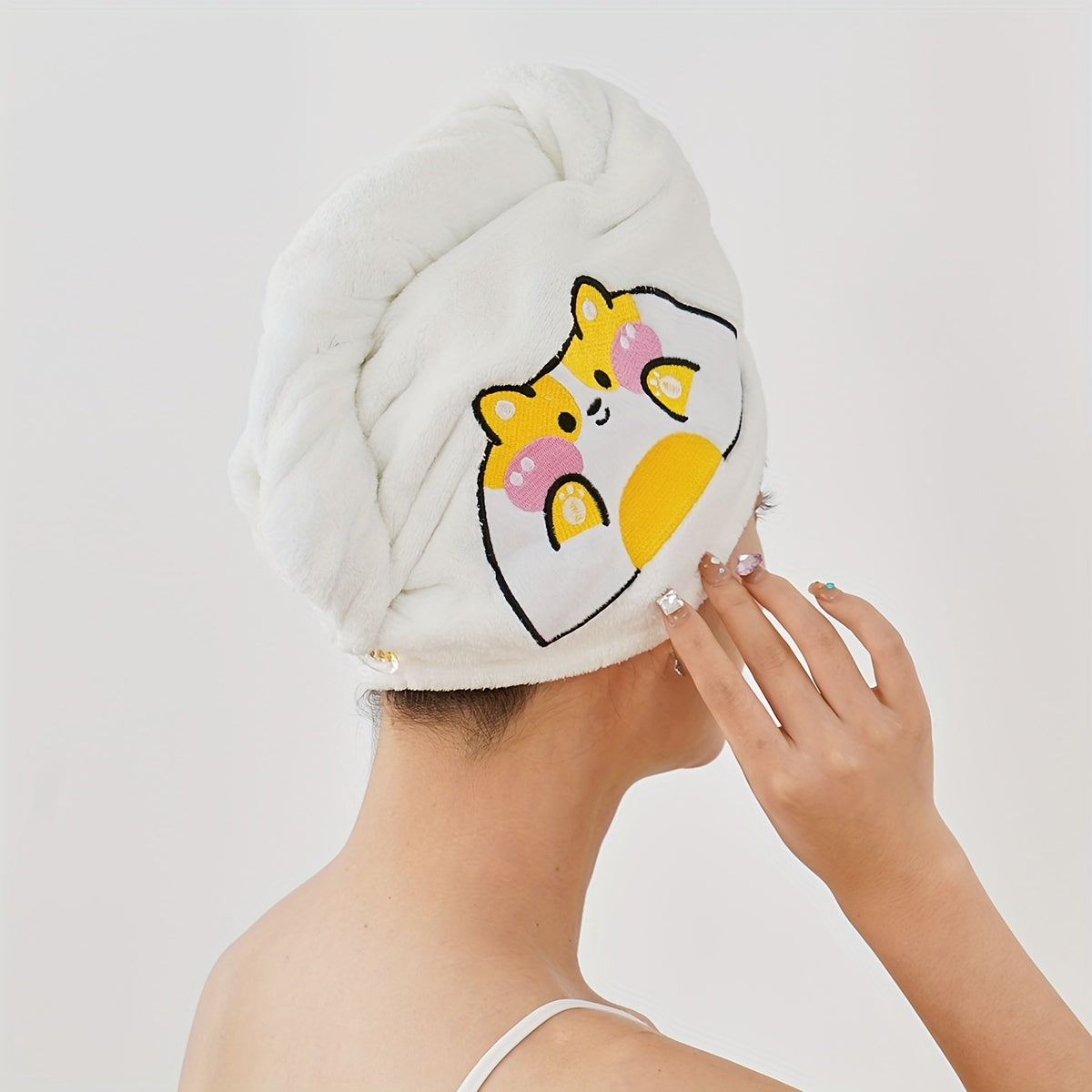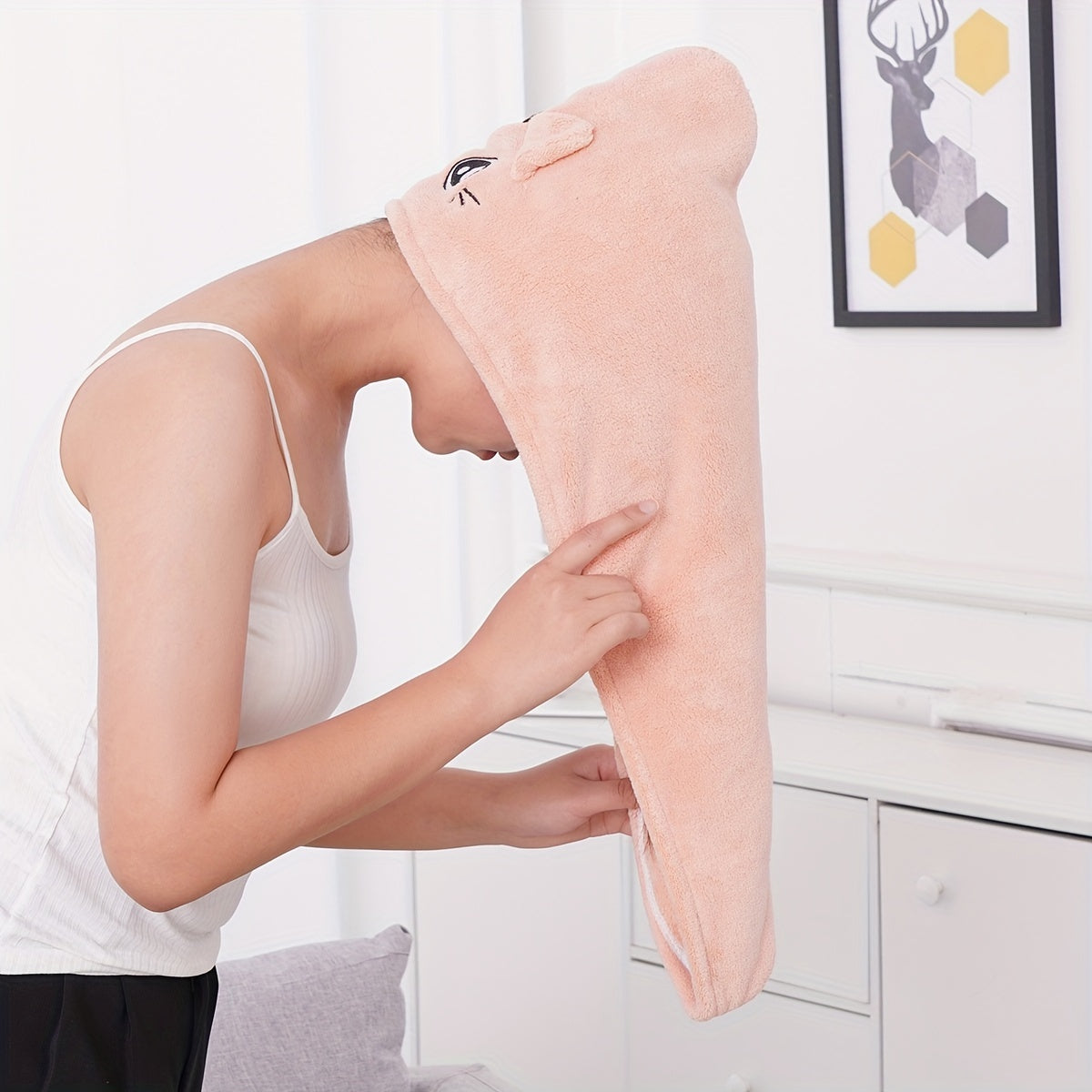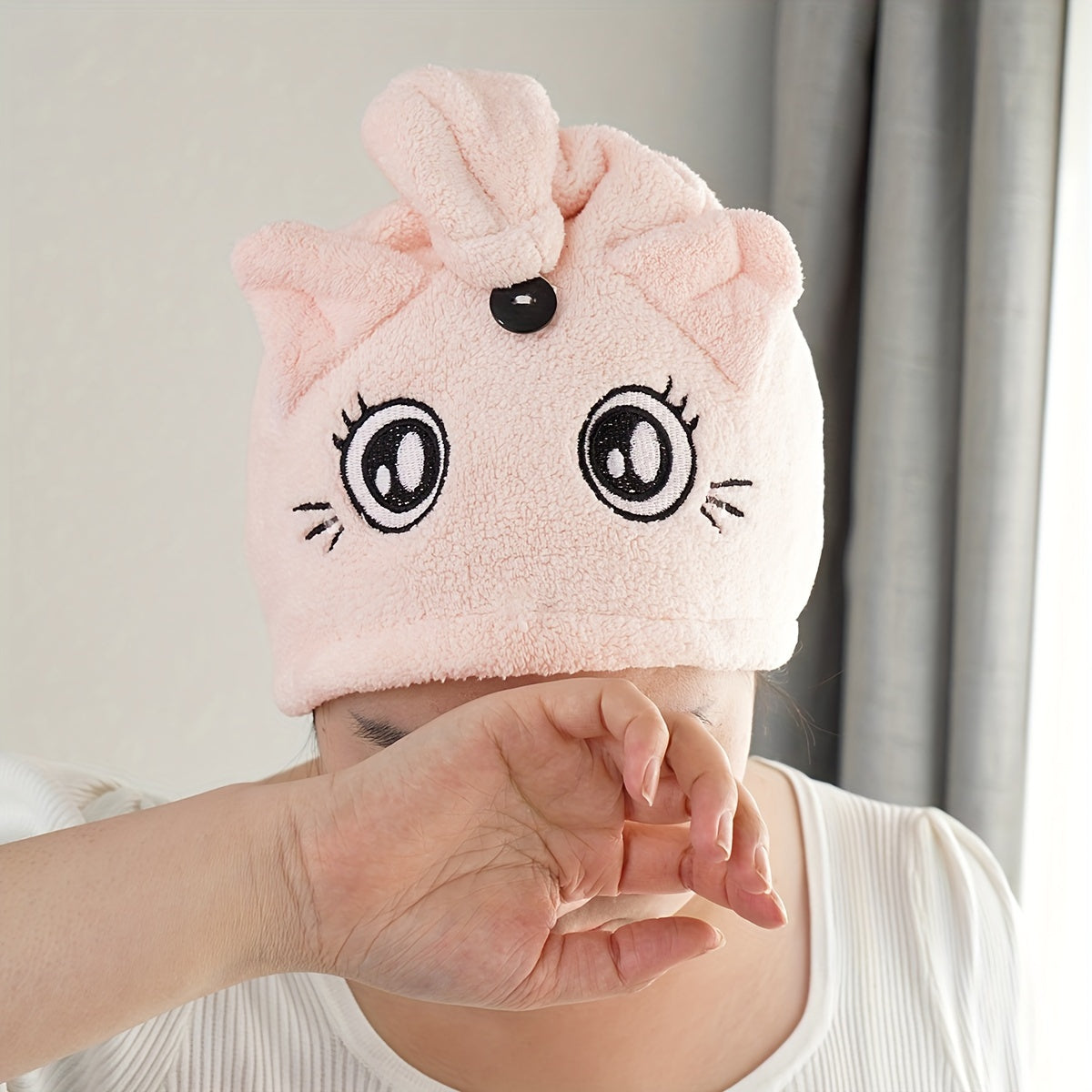 Быстросохнущее полотенце для волос с милым дизайном кота для женщин, изготовлено из ультрамягкого кораллового флиса.