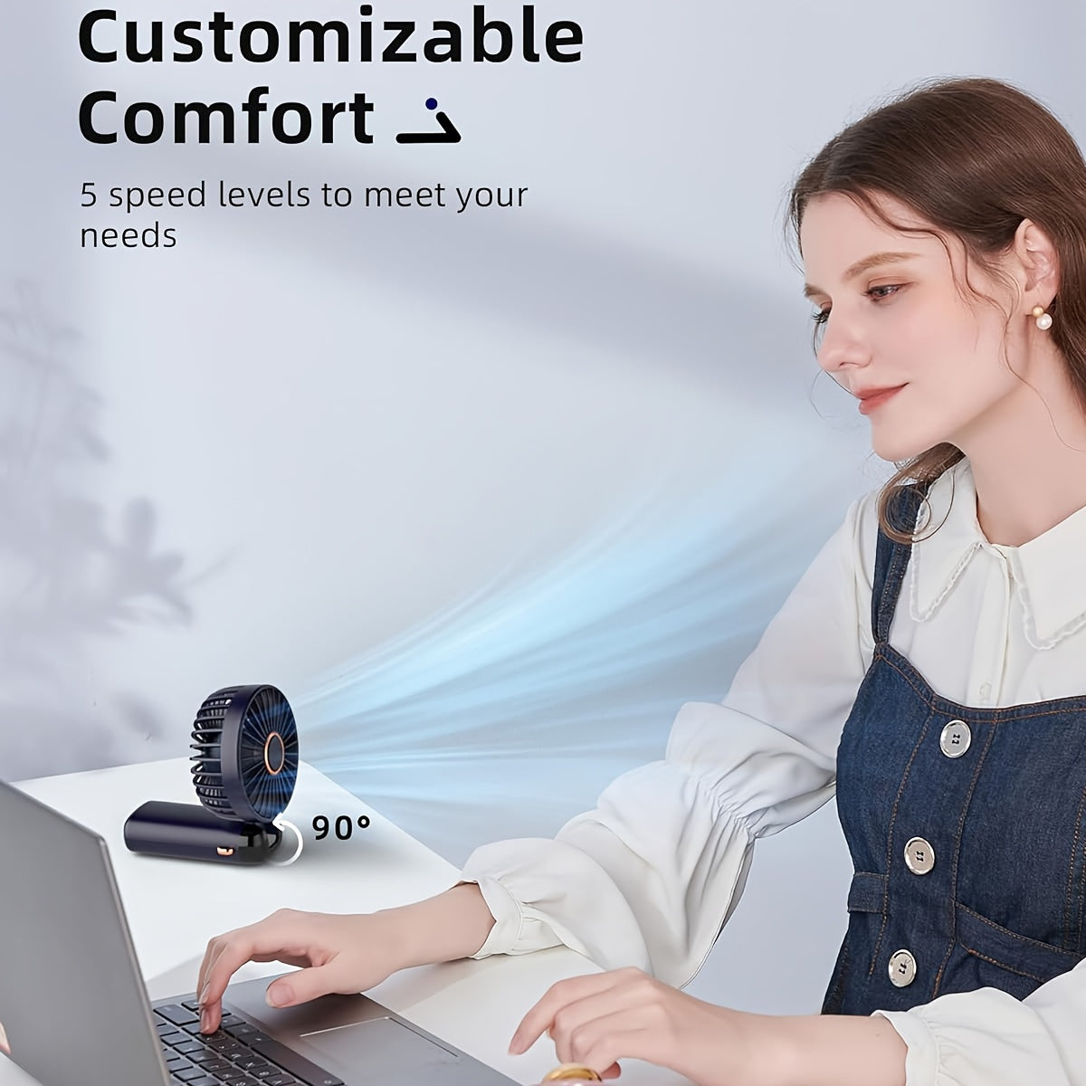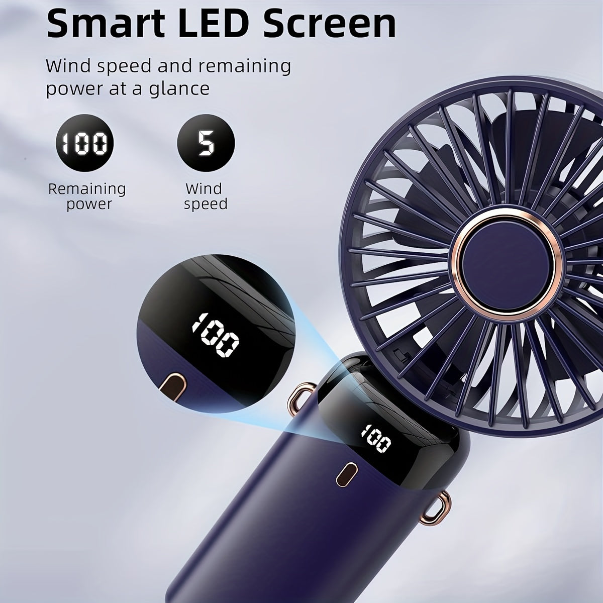 Тихий портативный вентилятор с шнурком, перезаряжаемый через USB, складной для путешествий внутри и снаружи.