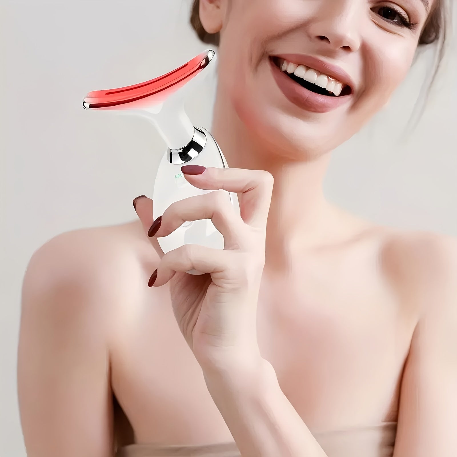 Перезаряжаемый LED-массажер для лица и шеи с режимами цвета, функцией нагрева, зарядкой через USB, идеальный подарок к Дню матери
