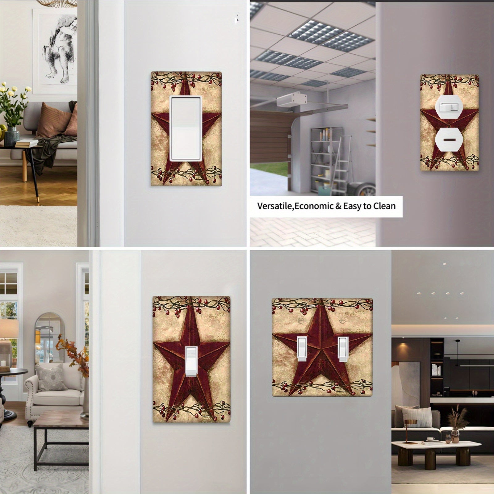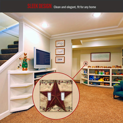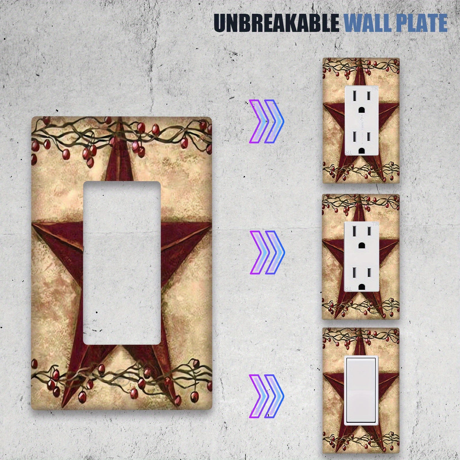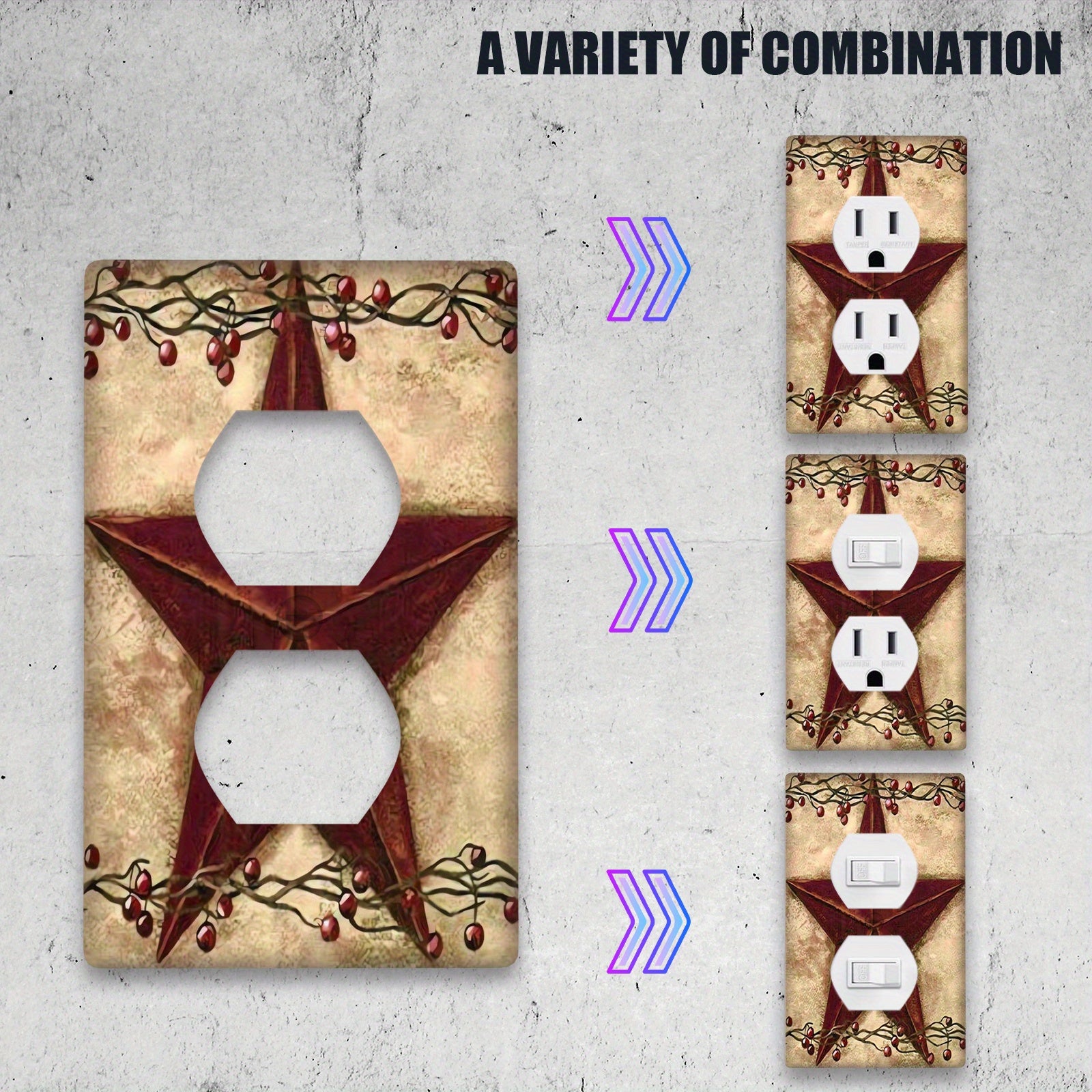 Крышка выключателя света с красной амбарной звездой и ягодами - декоративная стеновая панель для использования в помещении/на улице в спальне, кухне или ванной.