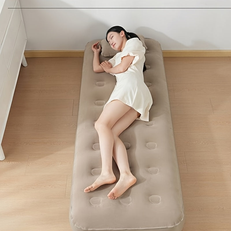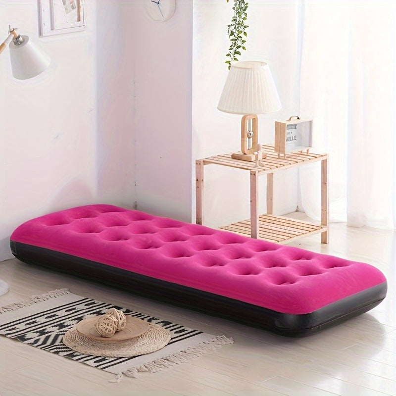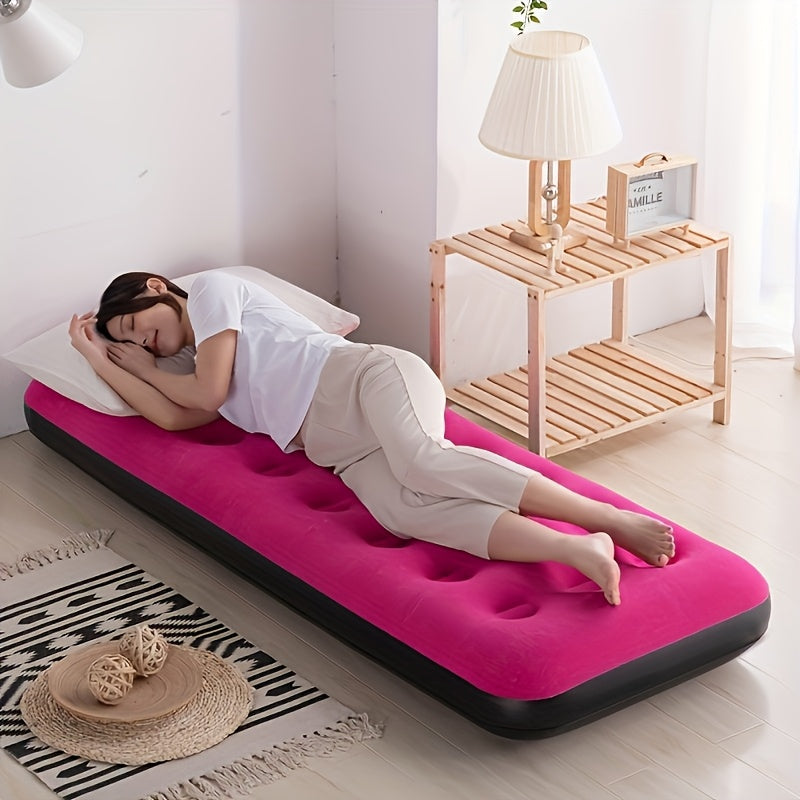 Красный надувной бархатный матрас для кемпинга или домашнего использования, поддерживает до 200 кг без необходимости в электричестве или насосе.