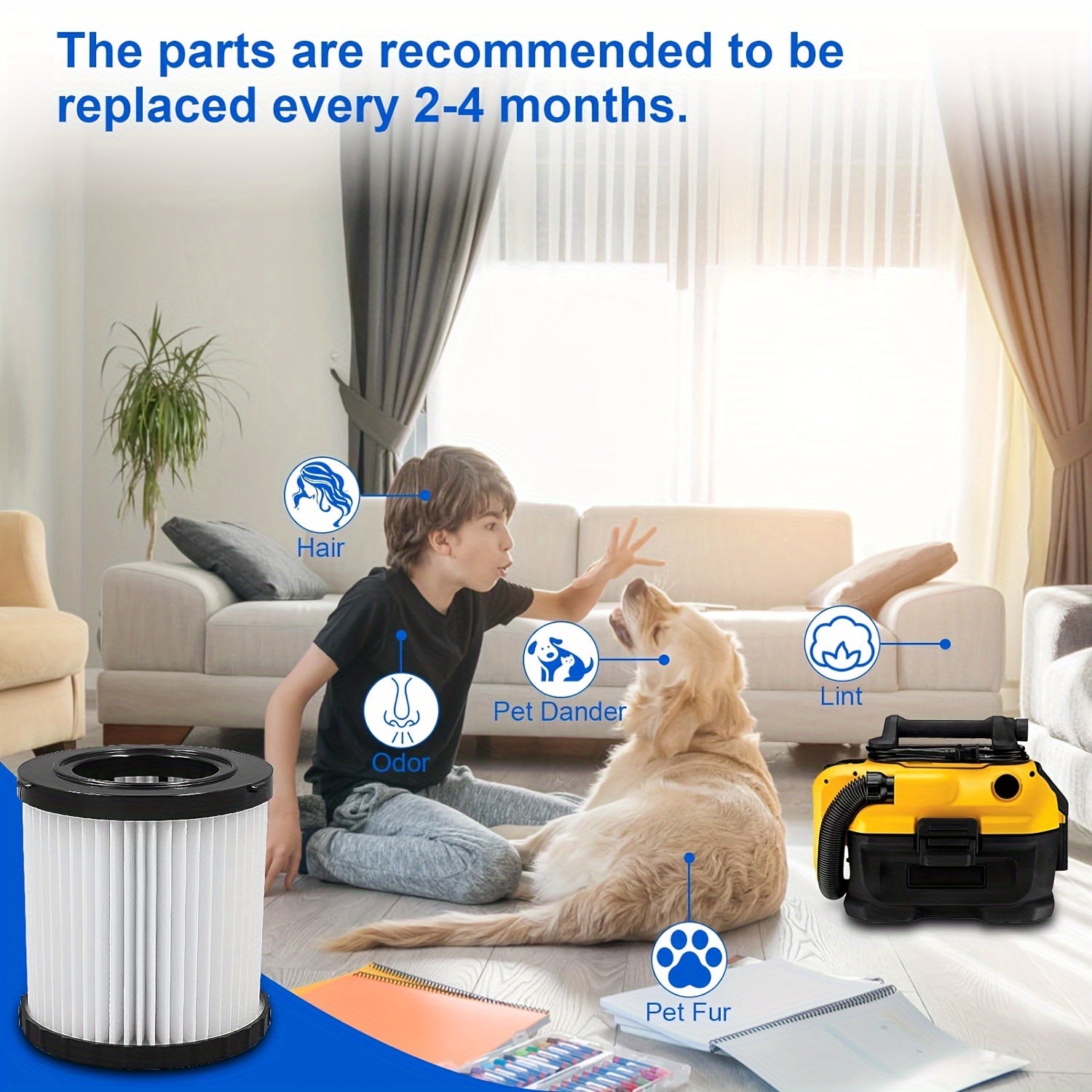 Фильтр замены для пылесосов Dewalt DCV580H, DCV581H, DCV5801H, который можно мыть и который обладает высокой эффективностью, изготовлен из перерабатываемого пластикового материала.