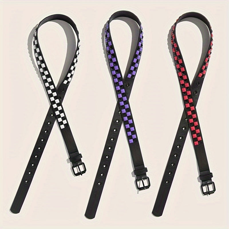 Унисекс пояс в стиле хип-хоп с пряжкой в клетчатом дизайне для джинсов