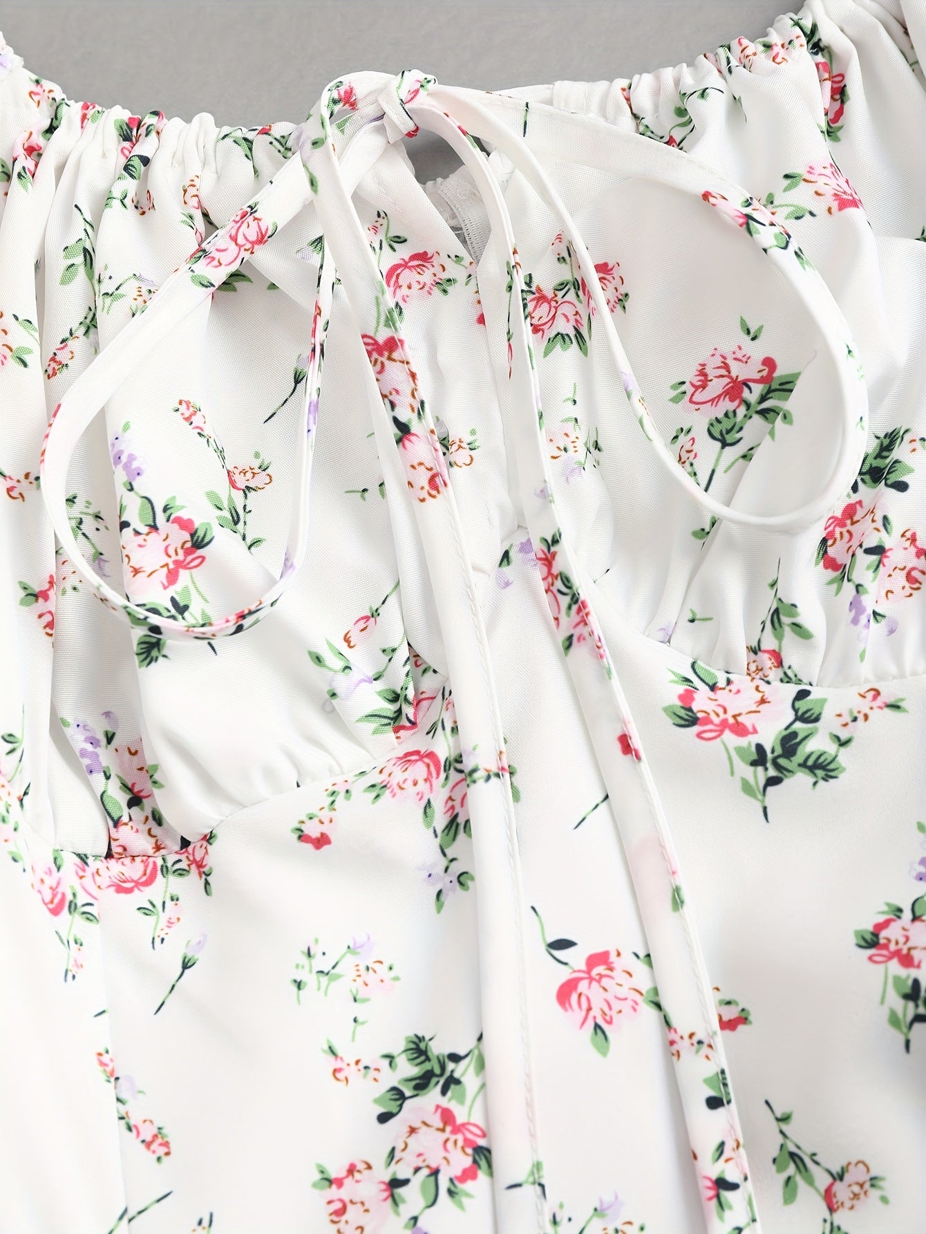 Романтичное маленькое цветочное платье с передними, средними и задними бретелями в европейской и американской быстрой моде.