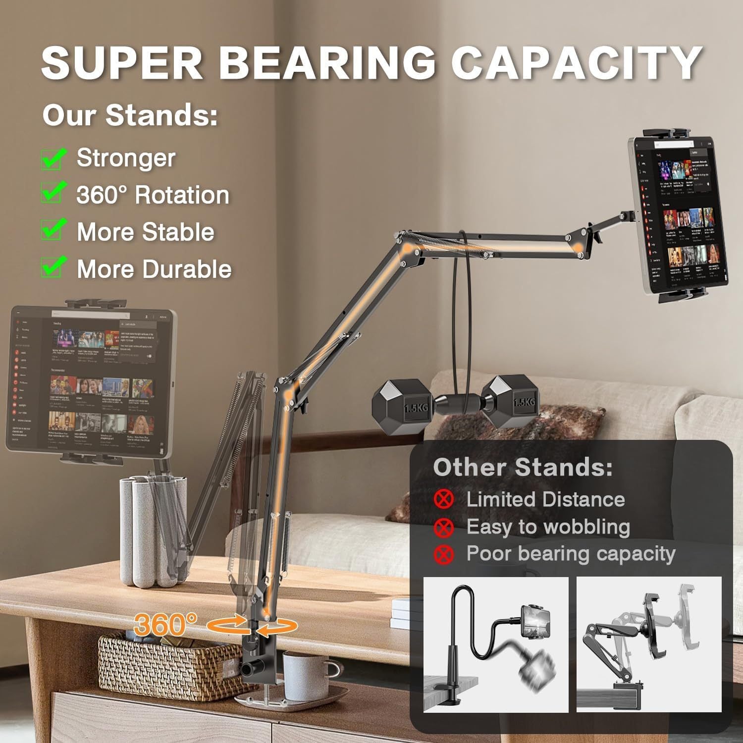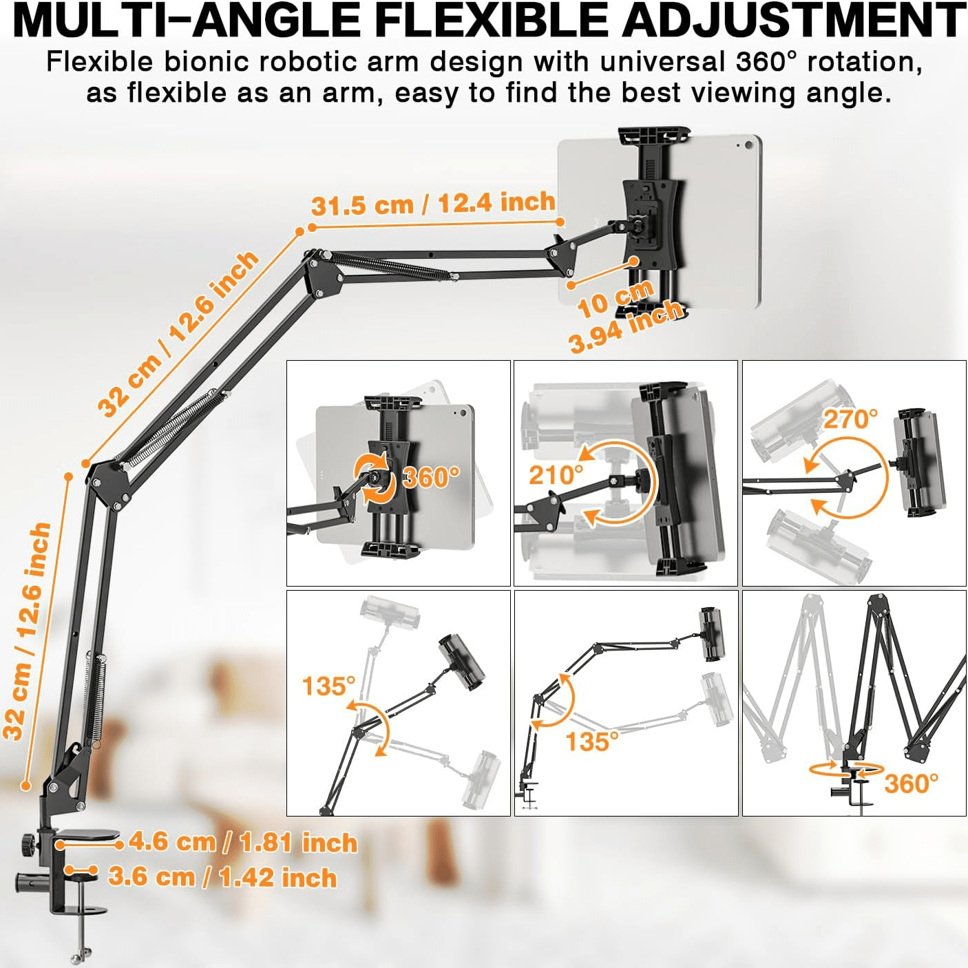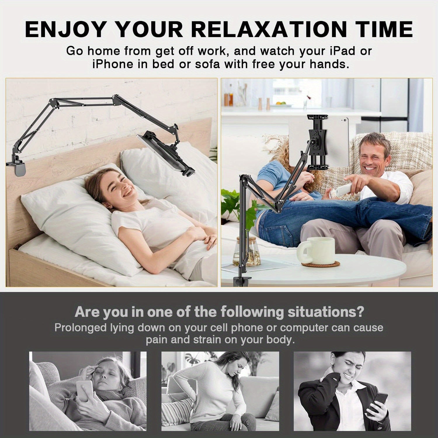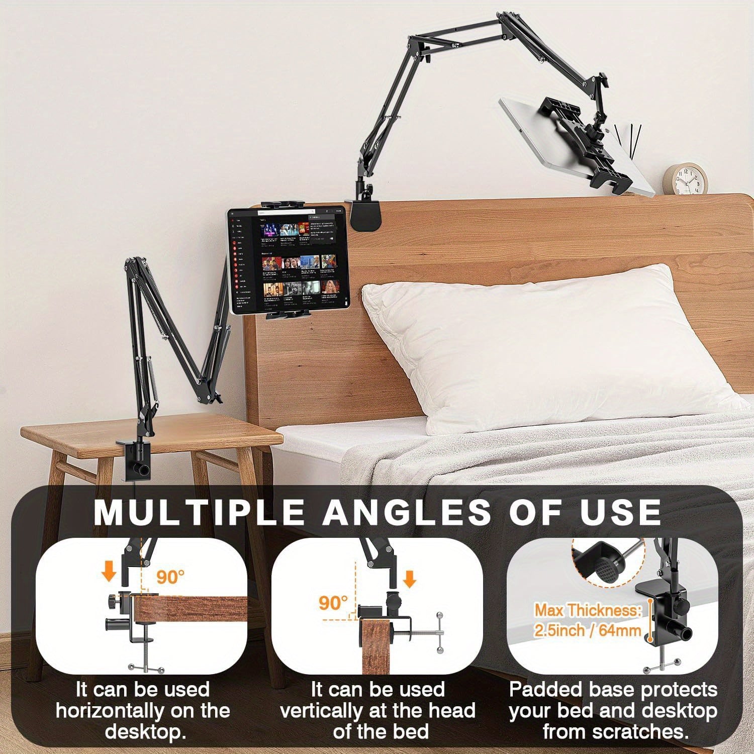 Регулируемый алюминиевый держатель для планшета на кровати с вращением на 360° для iPad, iPhone и устройств от 4,7 до 12,9 дюймов