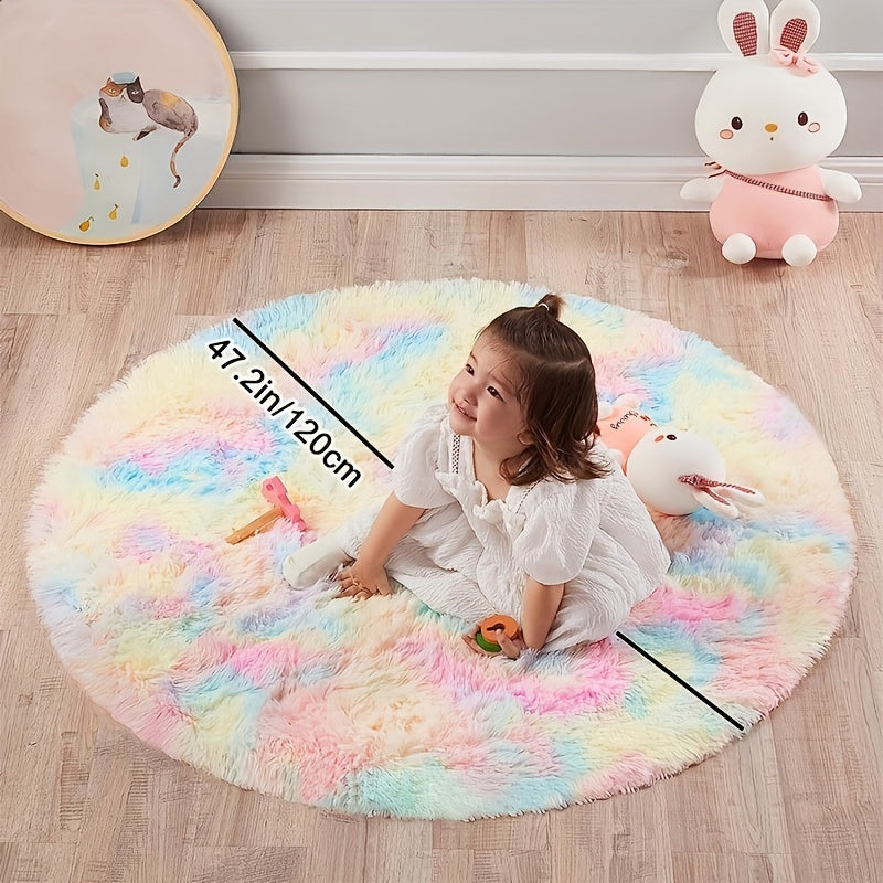 Круглый большой ультрамягкий плюшевый ковер - нескользящий и водонепроницаемый ворсистый коврик для гостиной, спальни, детской, игровой комнаты и общежития. Идеальное украшение комнаты для подростка - Декор комнаты (10,16 см X 10,16 см)
