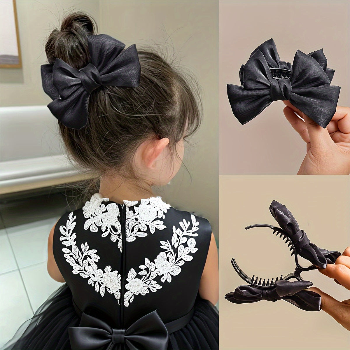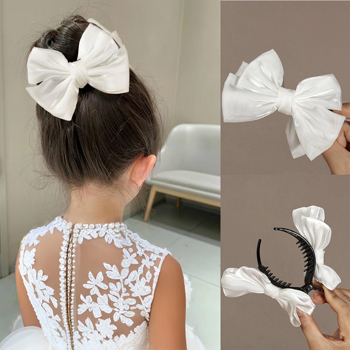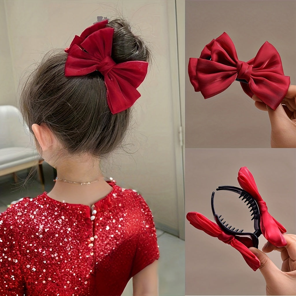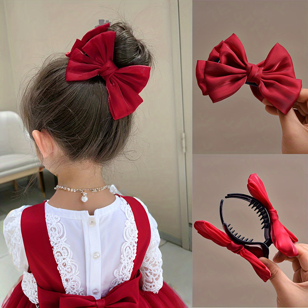 Бант из сатиновой ткани для заколки для волос, идеален для вечерних платьев, повседневной жизни или школы.