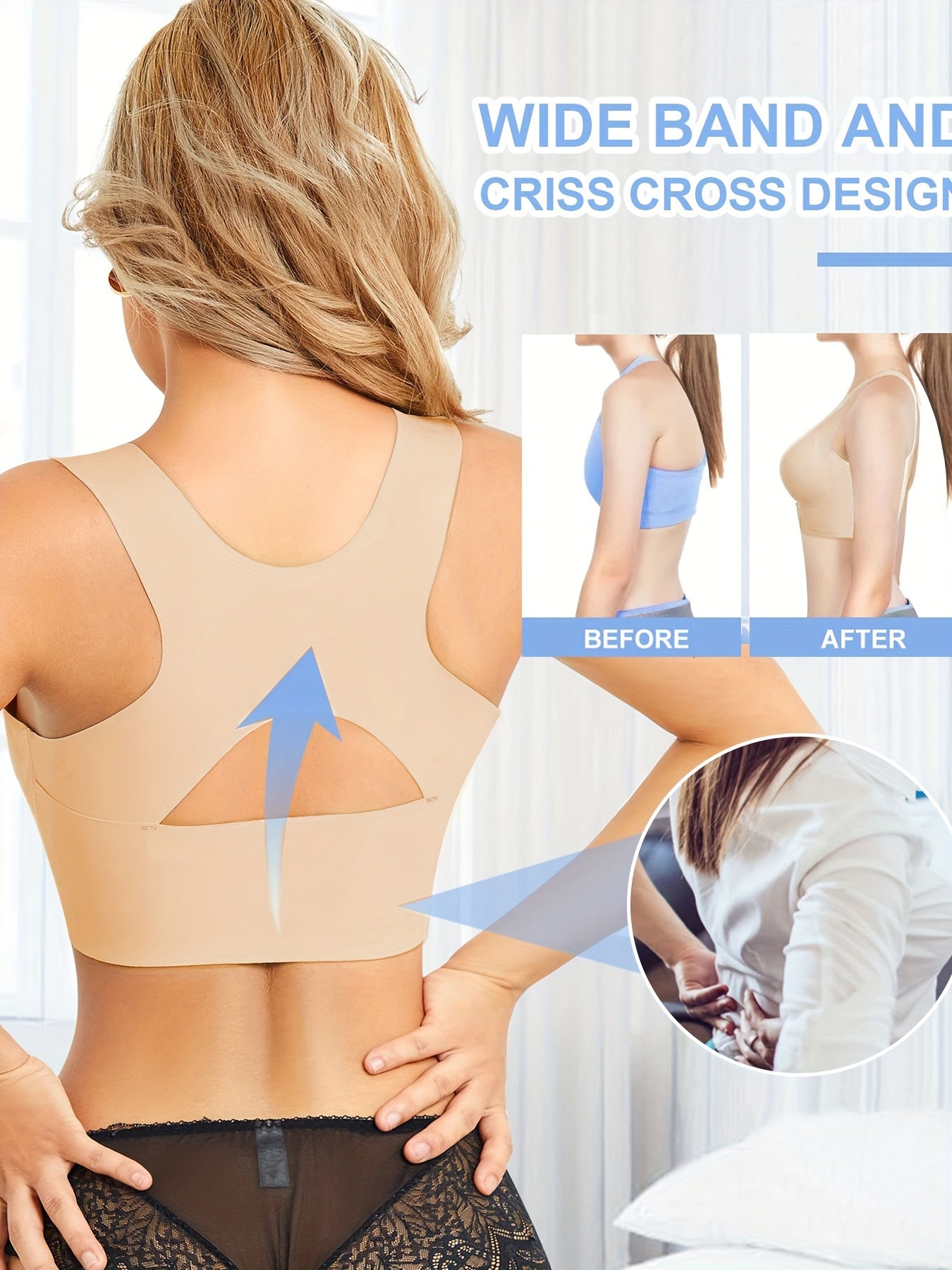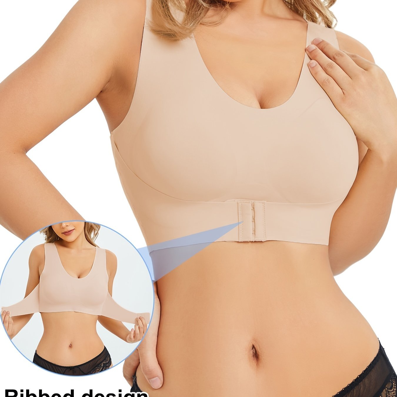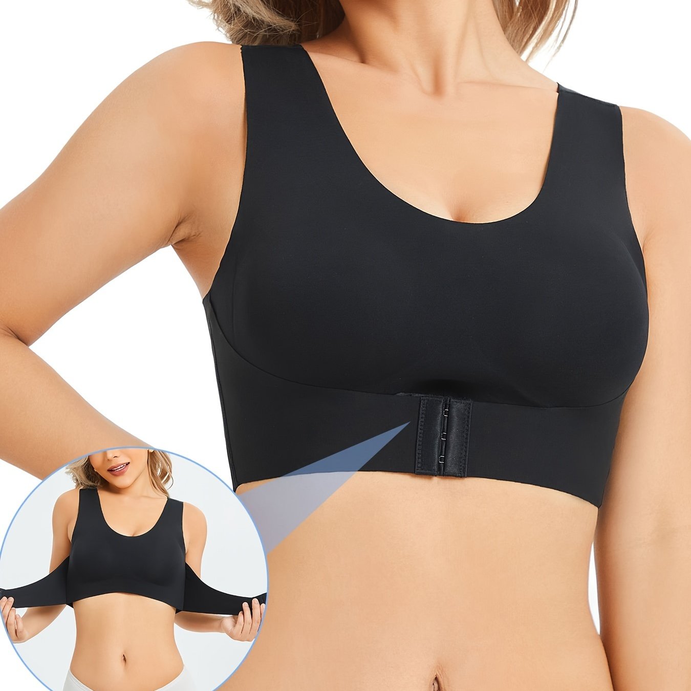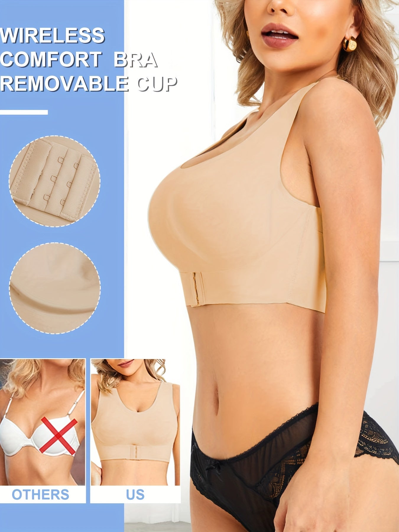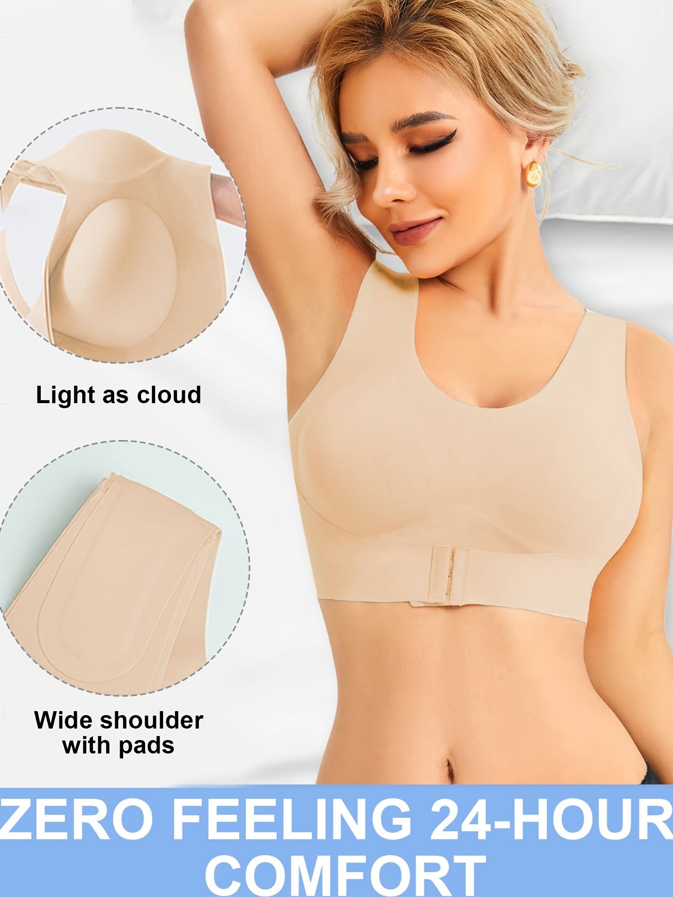 Бюстгальтер с бесшовным полным покрытием и пуш-ап эффектом, с передней застежкой и перекрестной спиной.