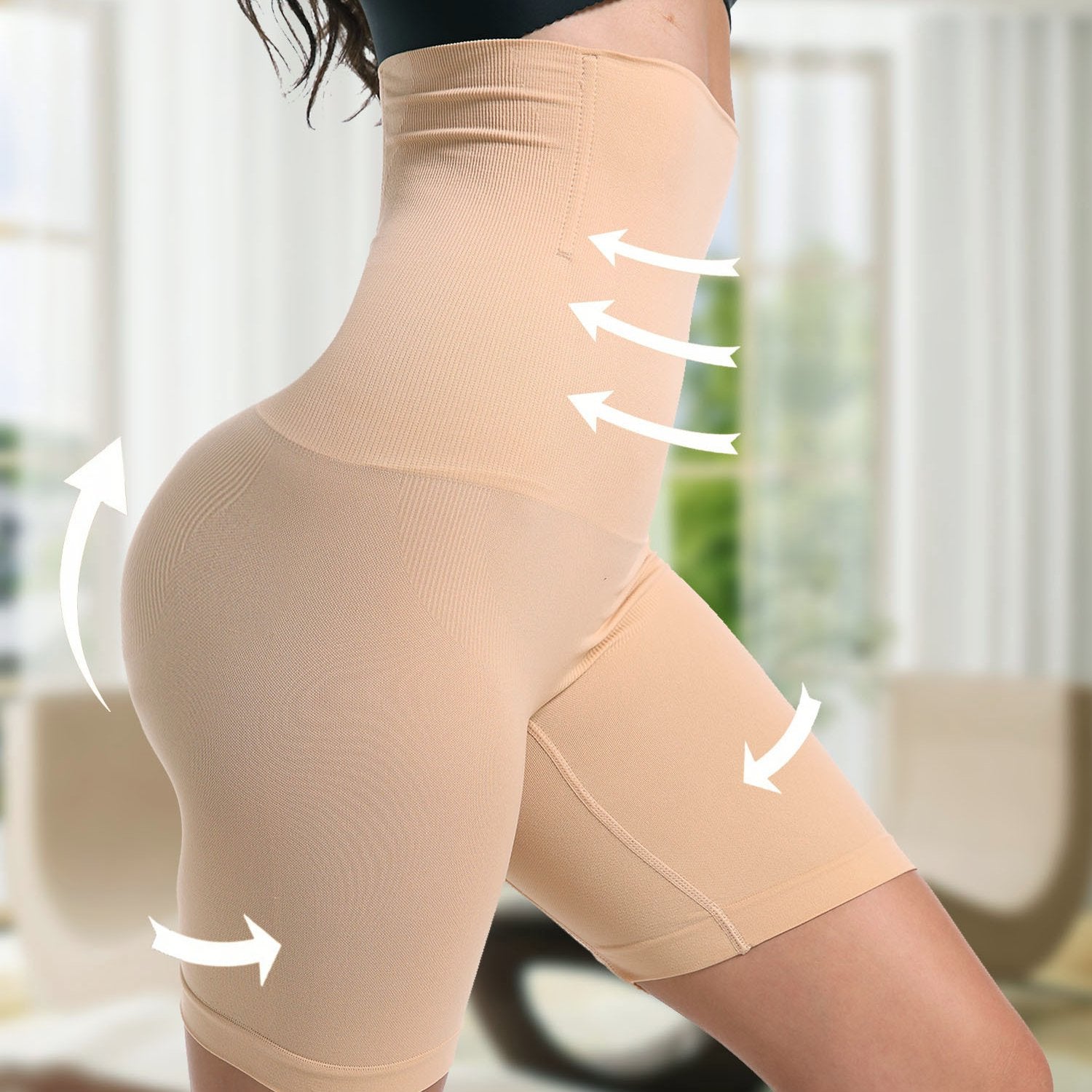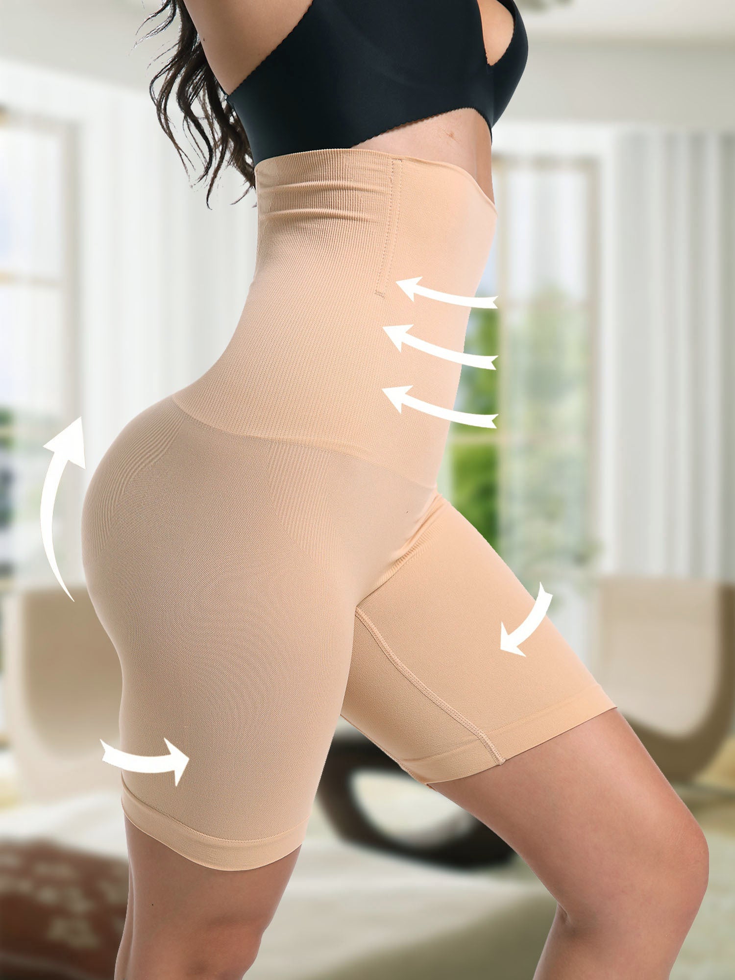 Трусики-шорты с высокой талией и бесшовной конструкцией для контроля живота и подъема ягодиц, черные