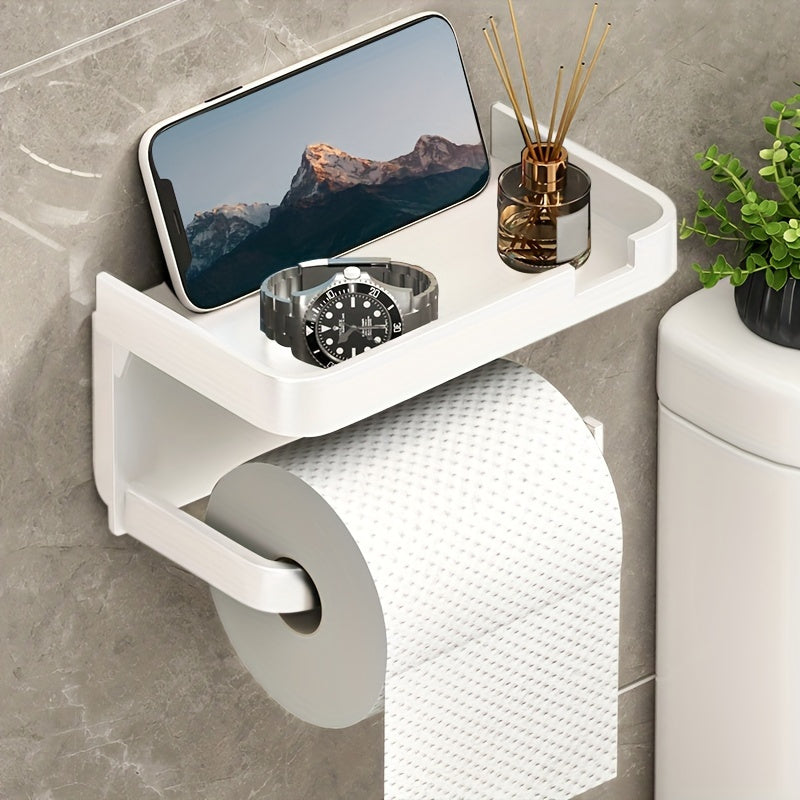 Самоклеящийся держатель для туалетной бумаги с ящиком для хранения бумаги и телефона.