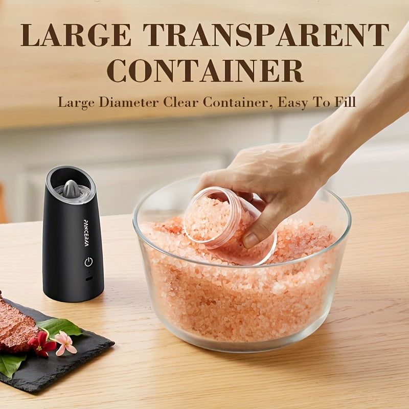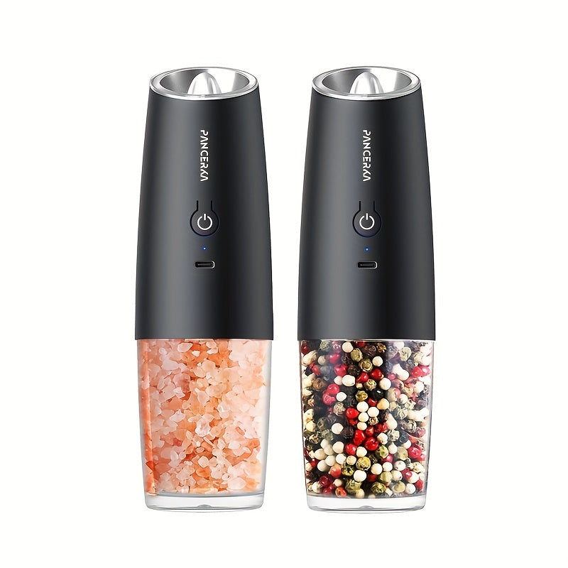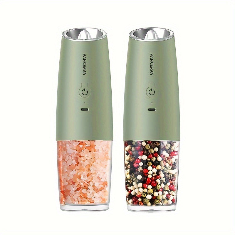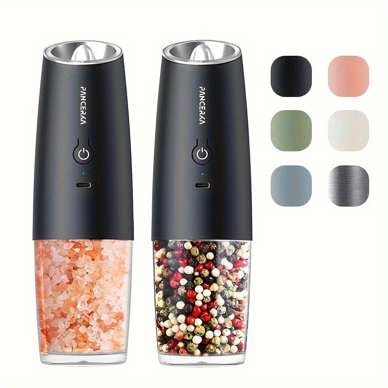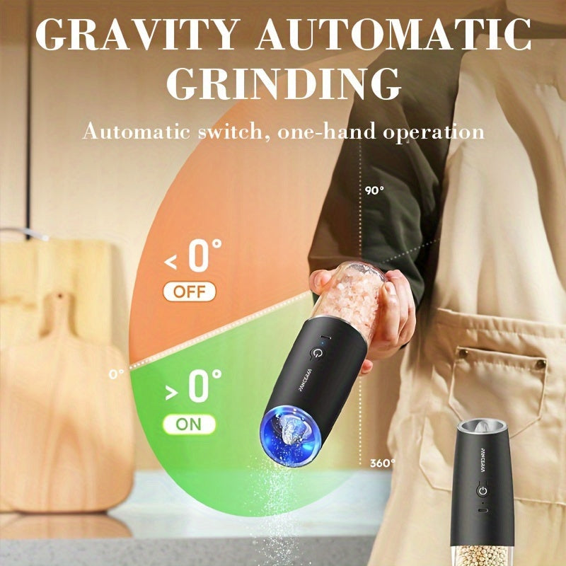 Набор из 1 или 2 электрических мельниц для перца и соли, перезаряжаемых через USB-C, без батареек, с LED-подсветкой, управляемых одной рукой, с регулируемой крупностью помола и из перерабатываемых материалов.