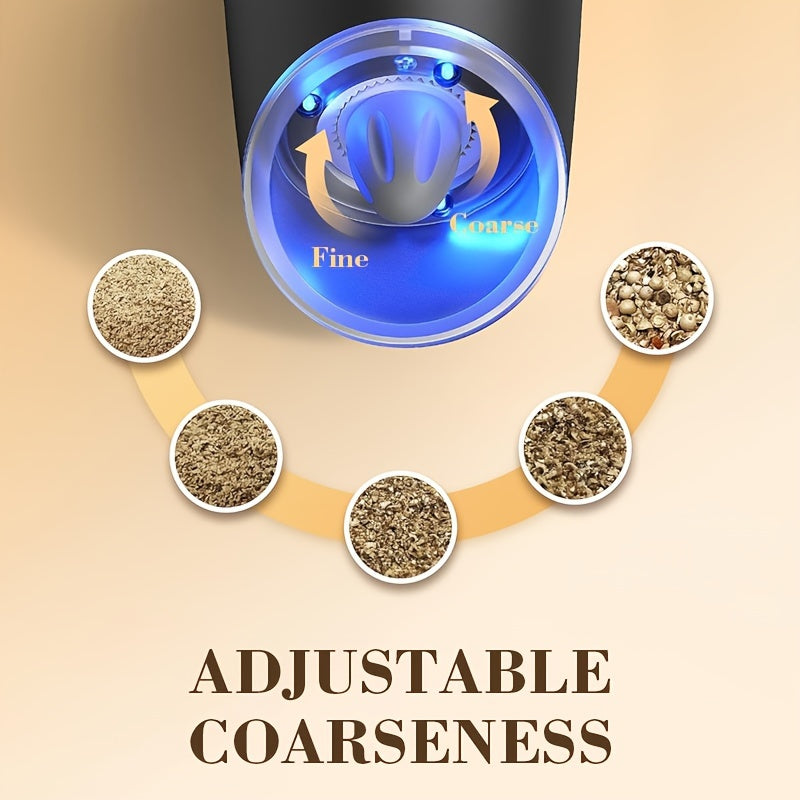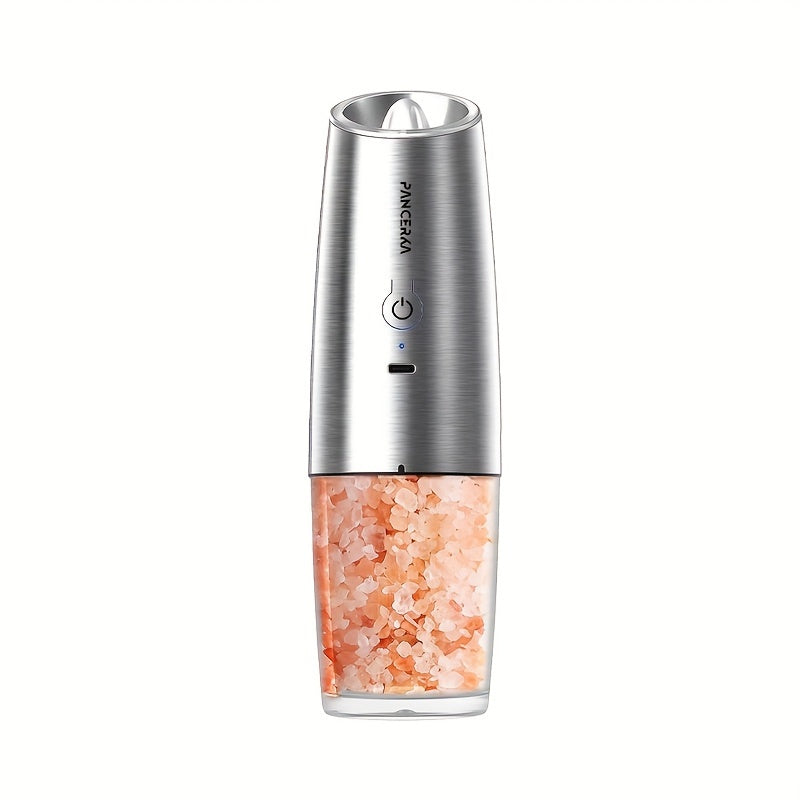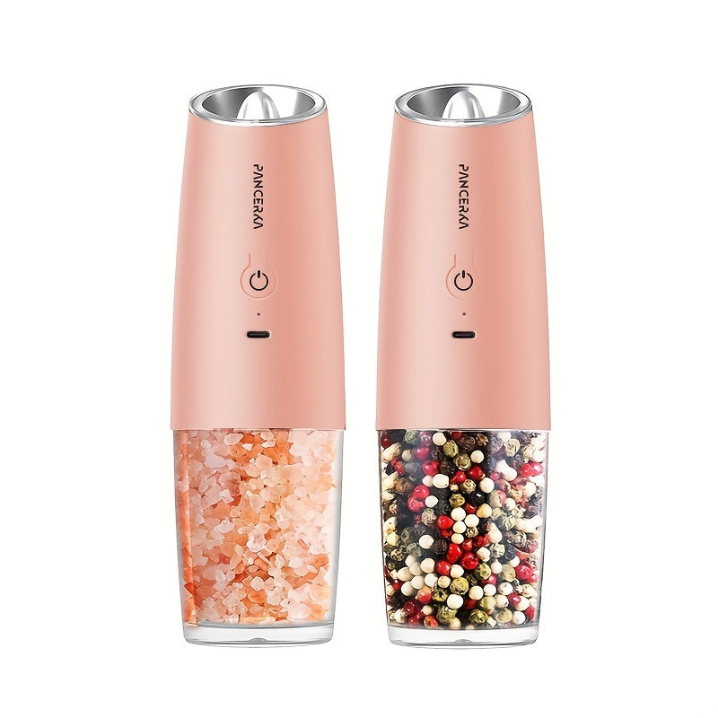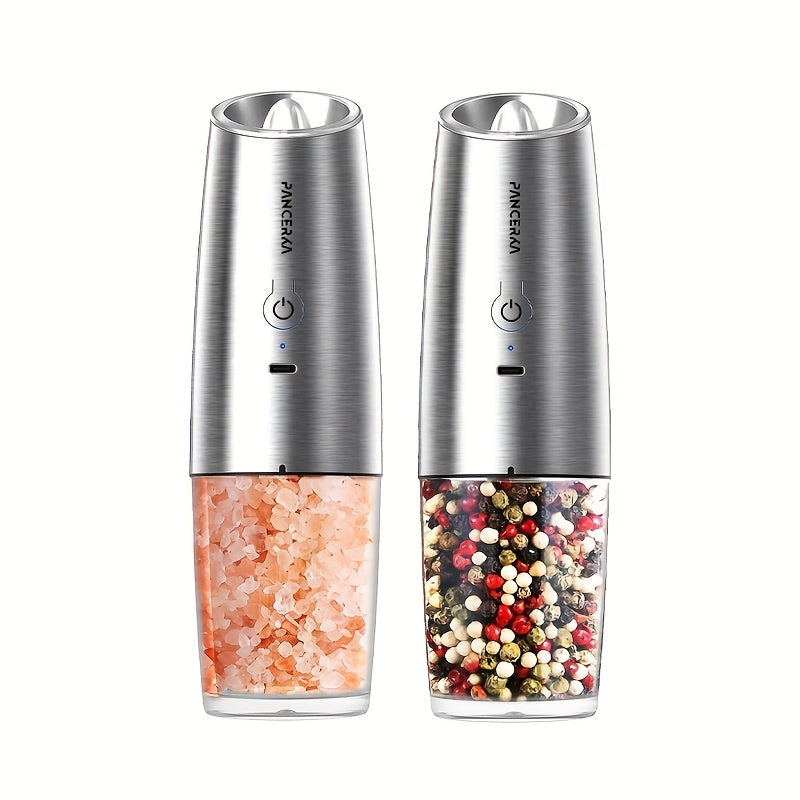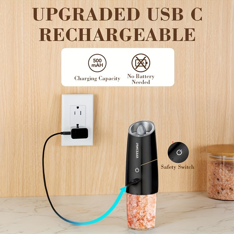 Набор из 1 или 2 электрических мельниц для перца и соли, перезаряжаемых через USB-C, без батареек, с LED-подсветкой, управляемых одной рукой, с регулируемой крупностью помола и из перерабатываемых материалов.