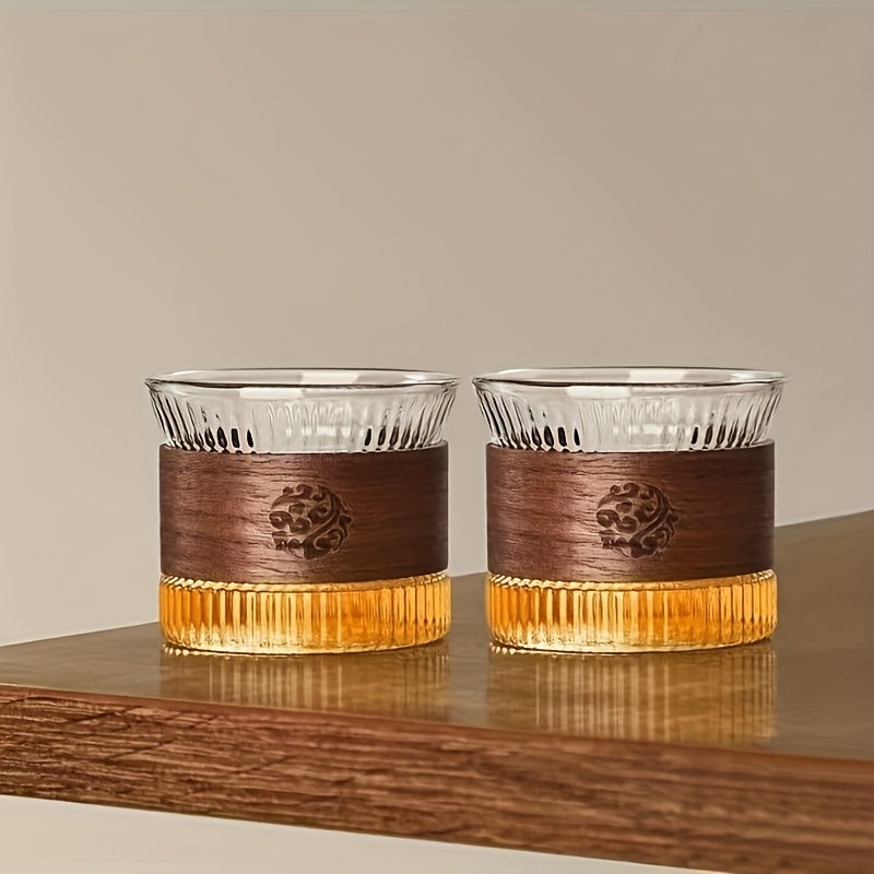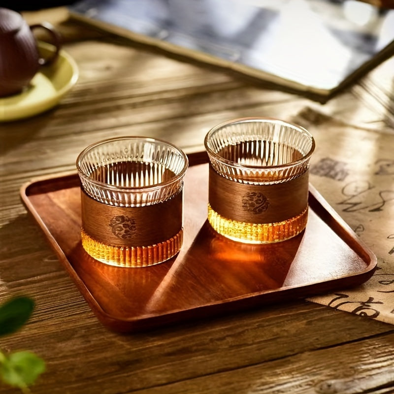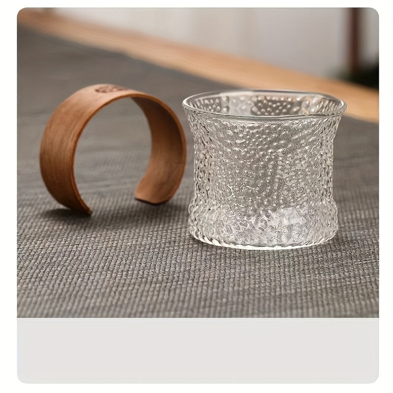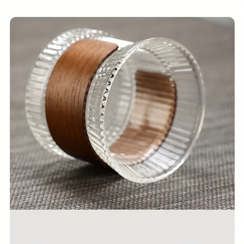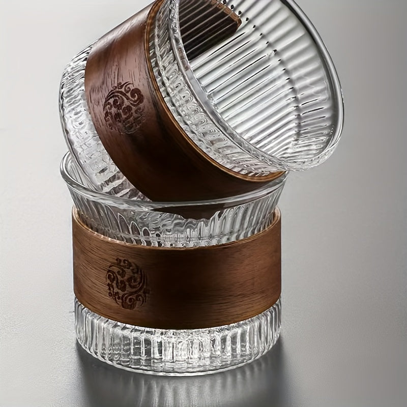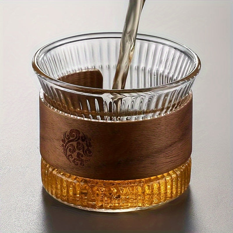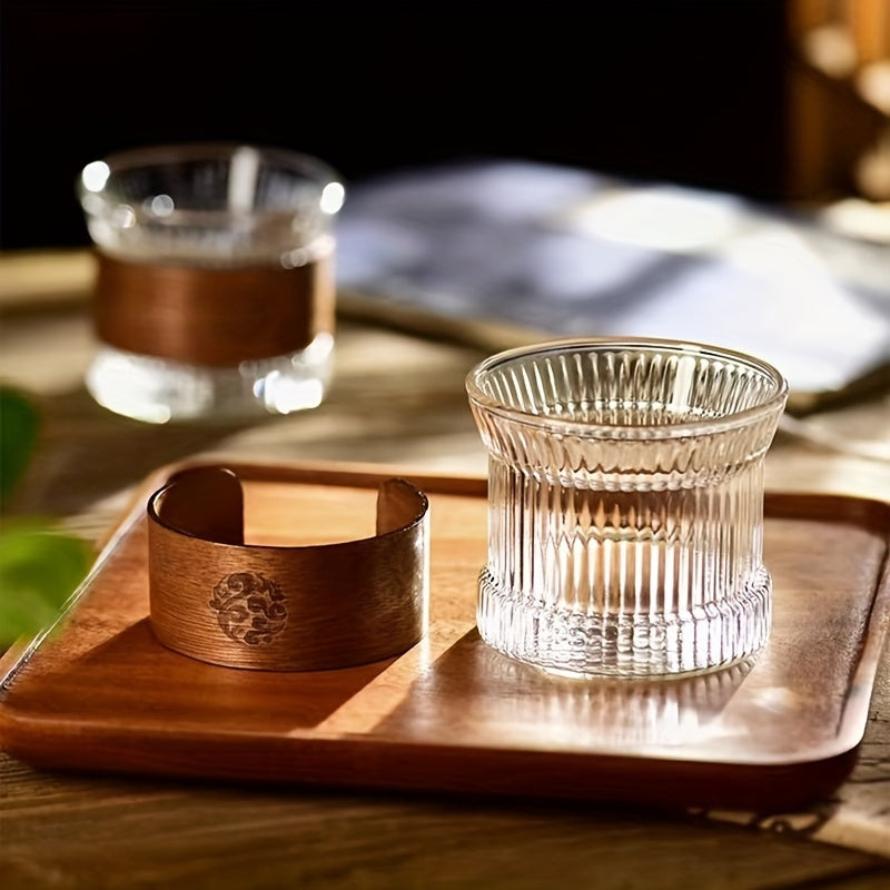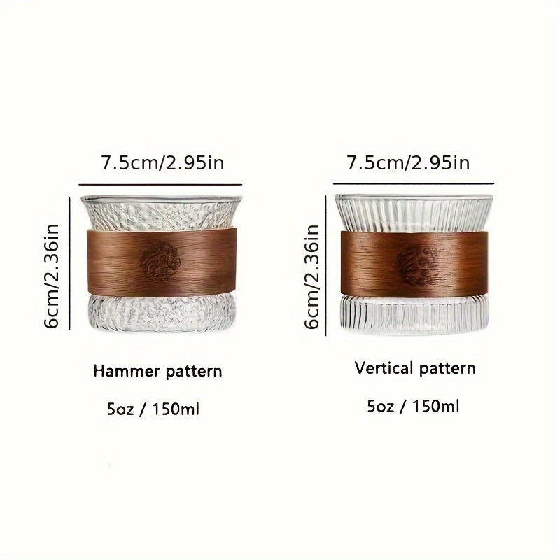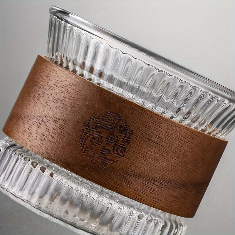 Набор из 1 многоразовой стеклянной кофейной чашки объемом 5 унций с деревянным рукавом. Имеет полосатый узор и противоскользящий дизайн. Перерабатываемая и безопасная для посудомоечной машины.