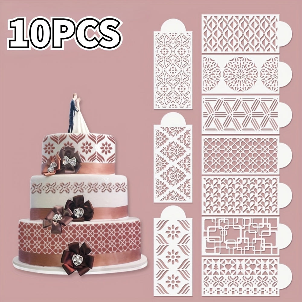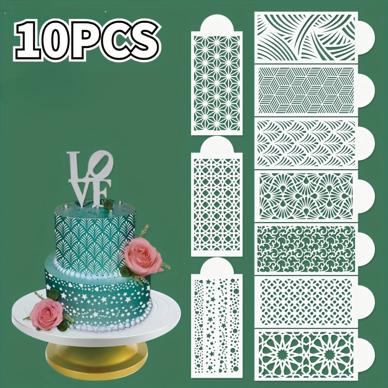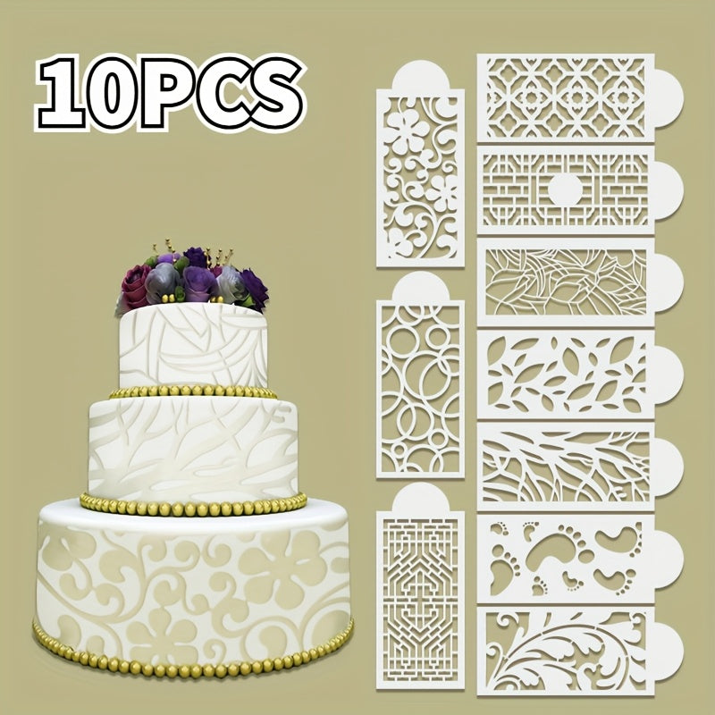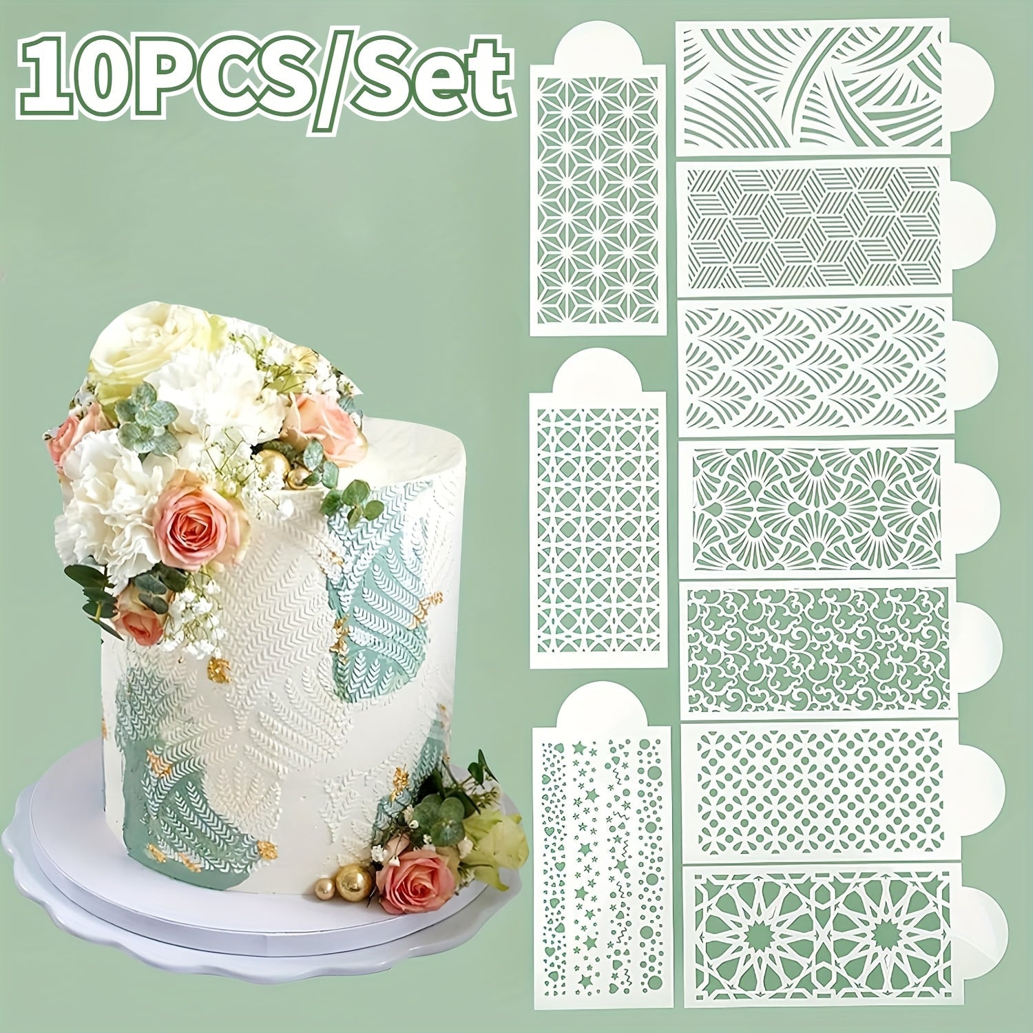 Набор из 10 трафаретов для украшения торта из помадки - прочные пластиковые инструменты для тиснения печенья, шоколада и многого другого своими руками - отлично подходит для свадеб, праздников и повседневной выпечки - многоразовые