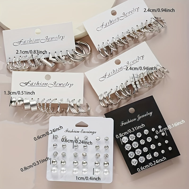 Набор из 102 серег в минималистичном геометрическом стиле, включающий гвоздики и кольца. Эти универсальные модные аксессуары для ушей идеально подходят для праздников, свиданий и повседневной носки. (Коробка не включена)