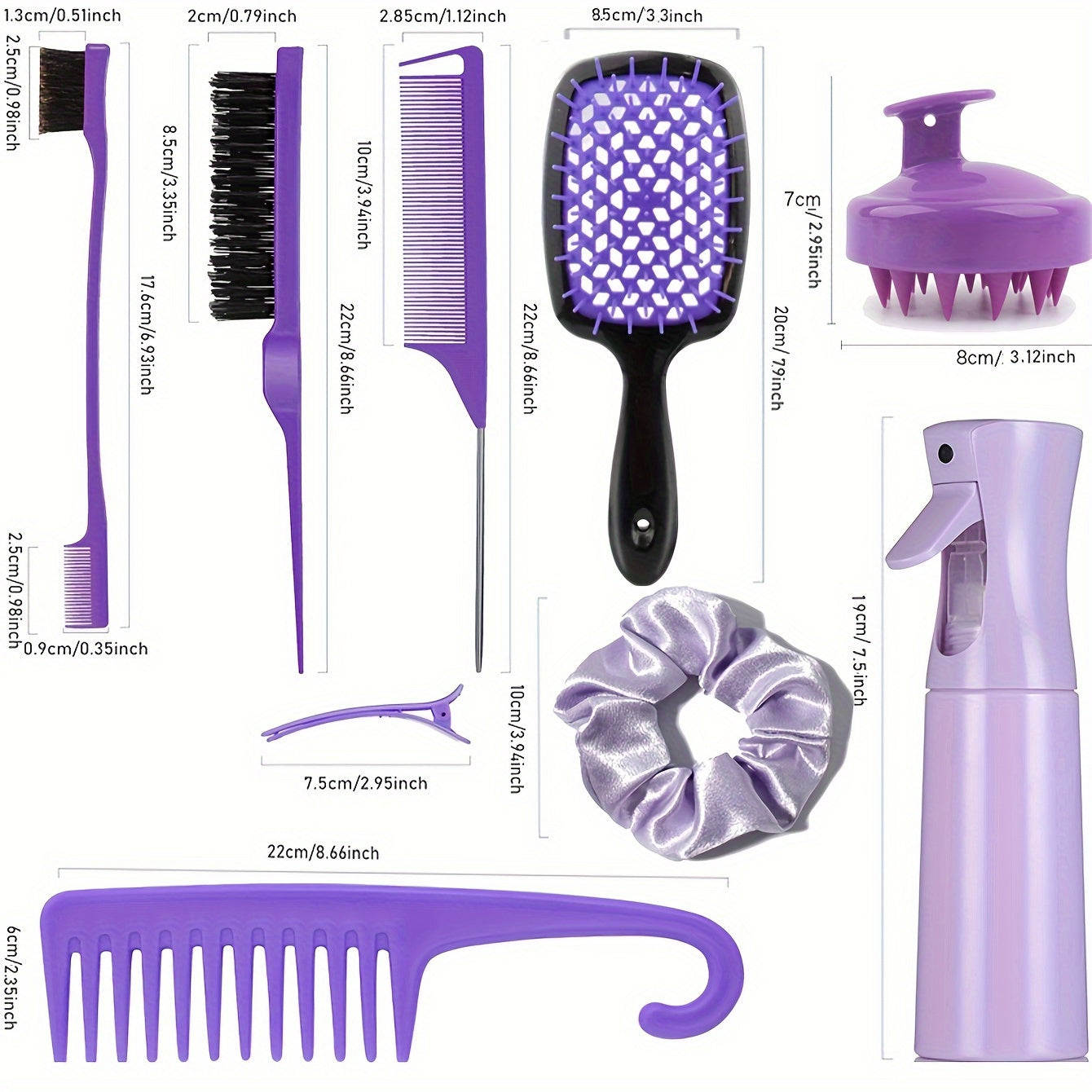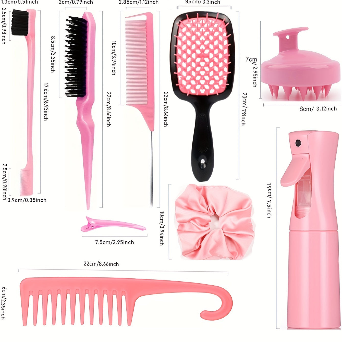 Набор из 12 расчесок для укладки волос, включая расческу для распутывания волос, силиконовую массажную щетку для кожи головы, расческу для распутывания, щетку для начеса, расческу с краем и бутылку для спрея для парикмахерских инструментов.