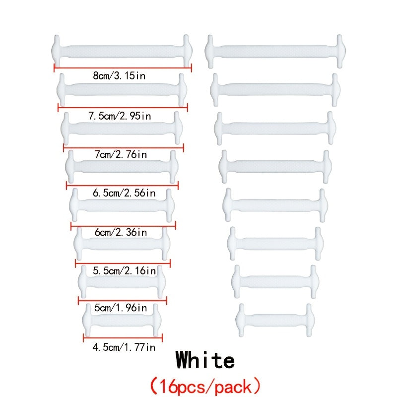 Set of 16 Silicone Stretch Shoelaces for Athletic and Casual Shoes Black White