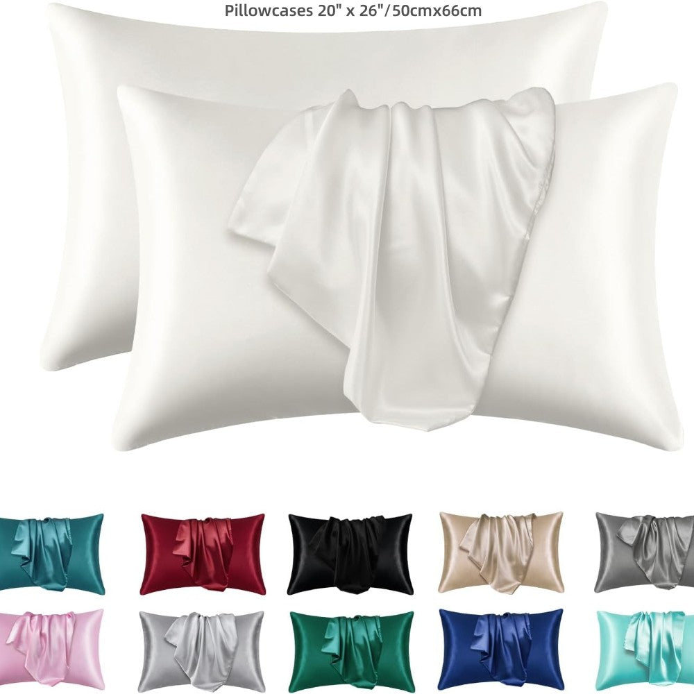 Комплект из 2 полиэстеровых наволочек для кожи и волос (основа не включена) - сатиновые наволочки, которые мягкие, дышащие, гладкие и охлаждающие для спокойного сна.