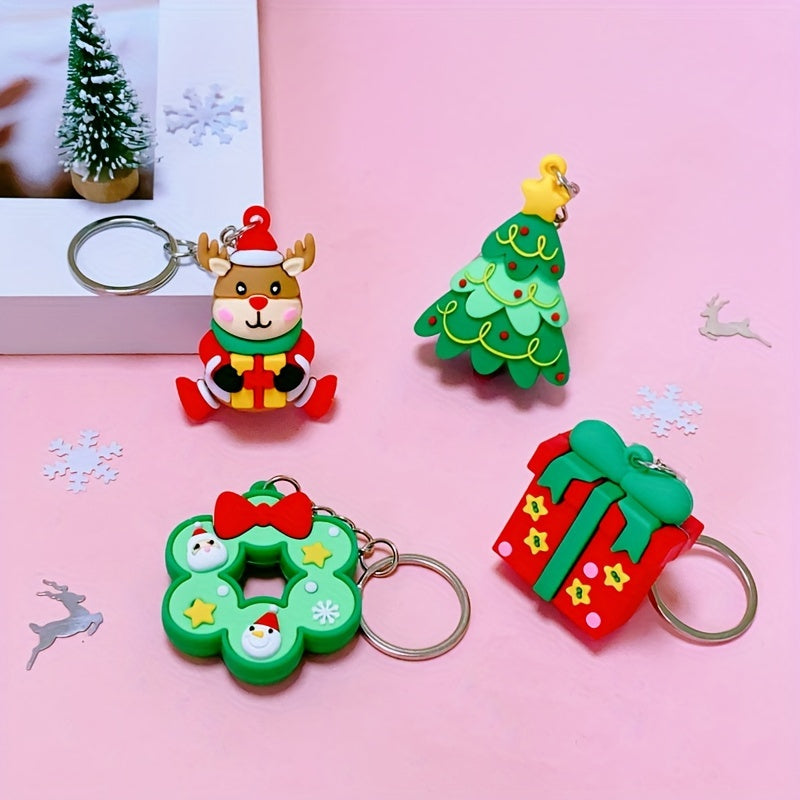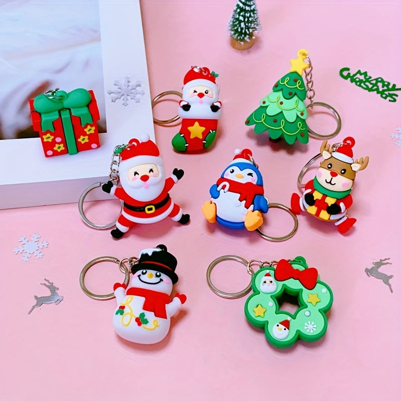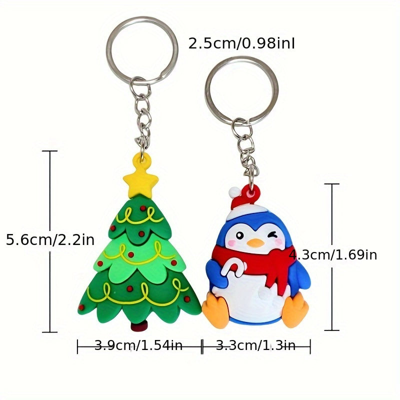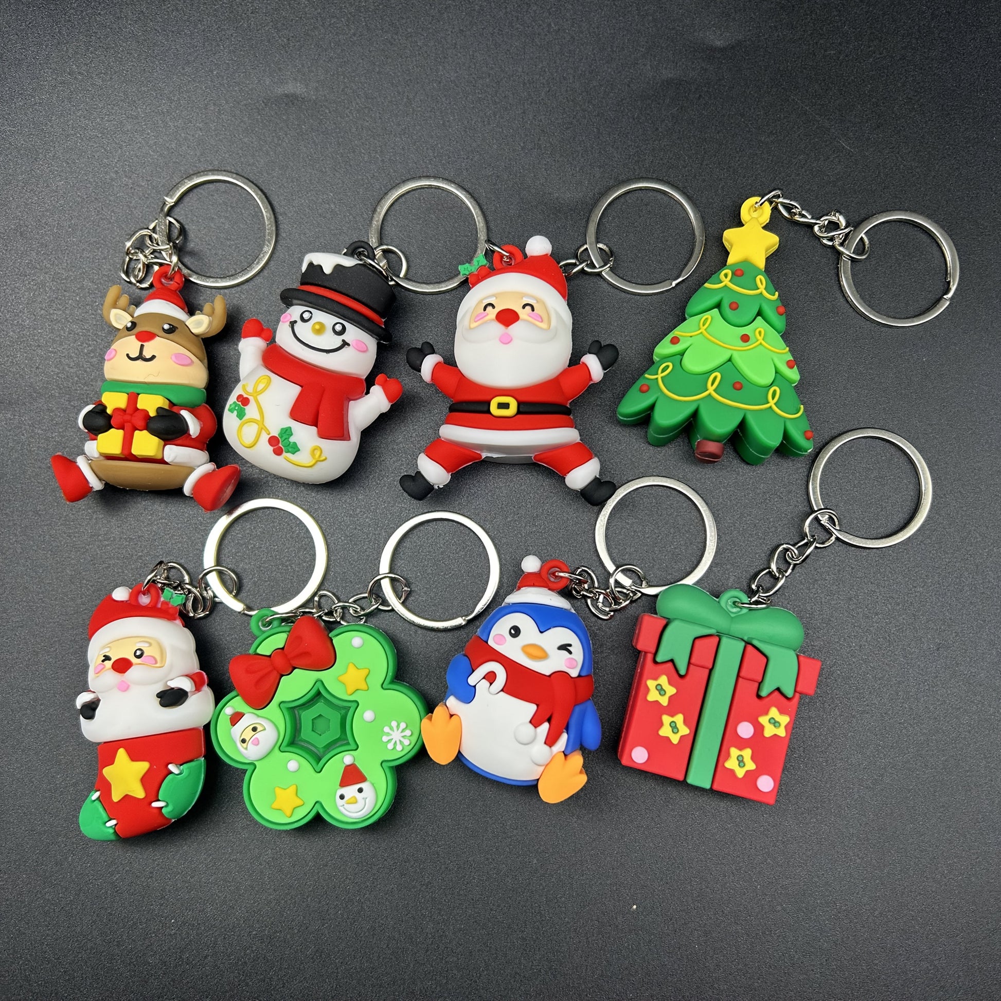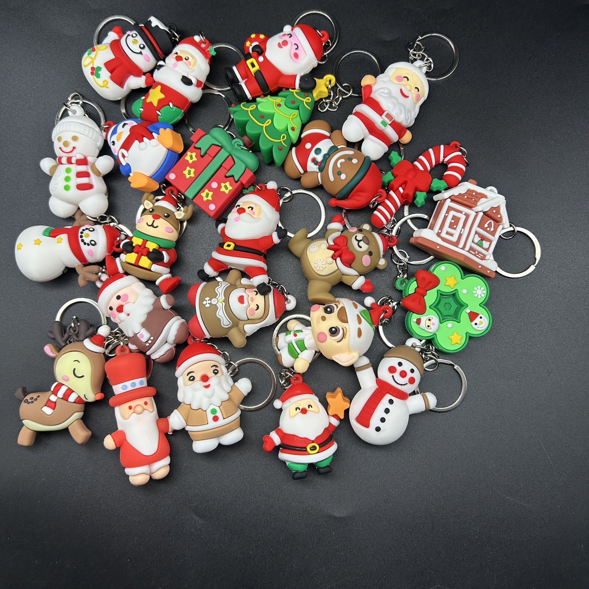 Набор из 25 праздничных PVC мультяшных рождественских брелков, включая брелки для пар с кольцевыми застежками и праздничными подвесками для украшения рождественских елок.