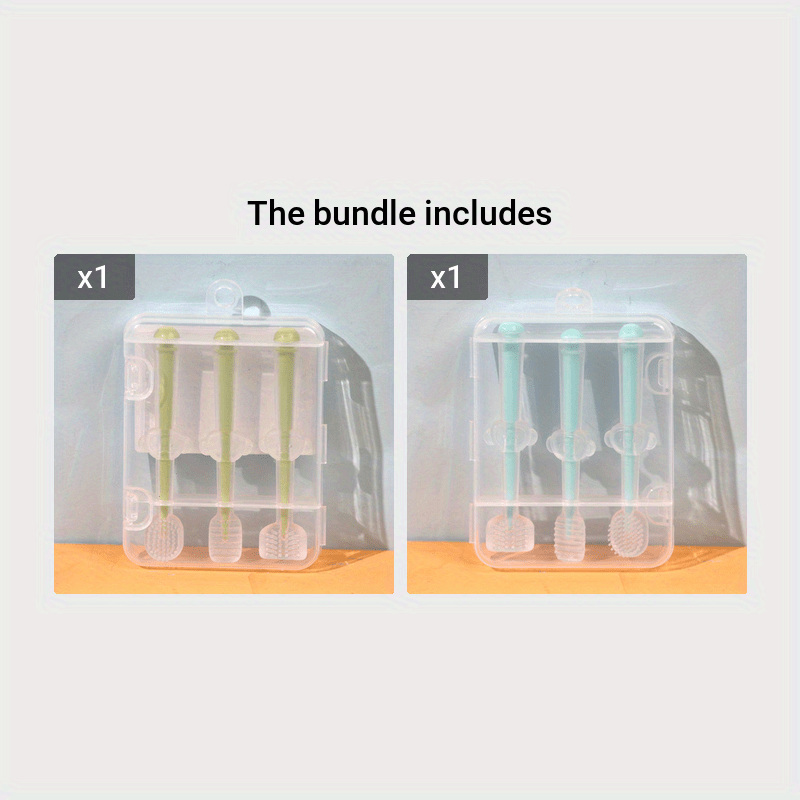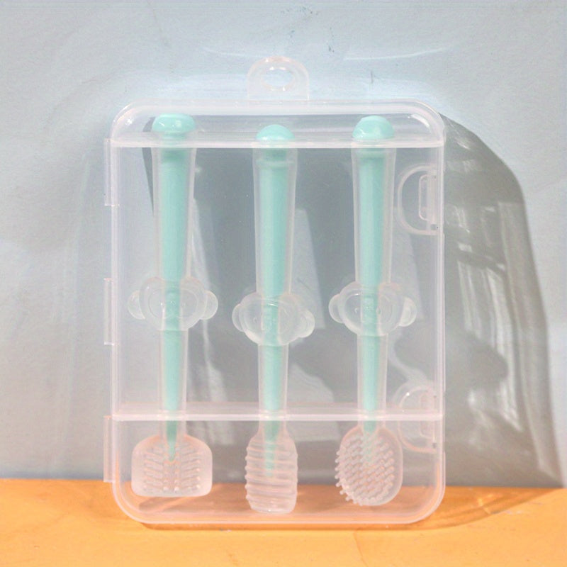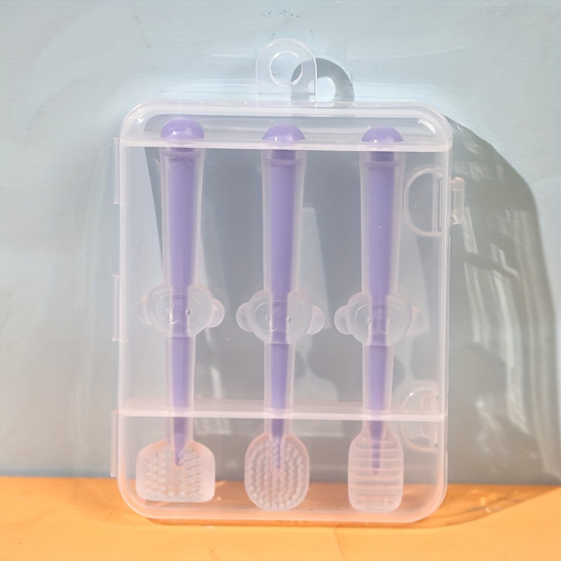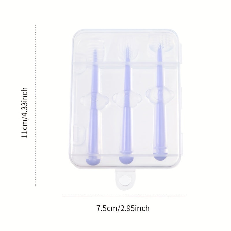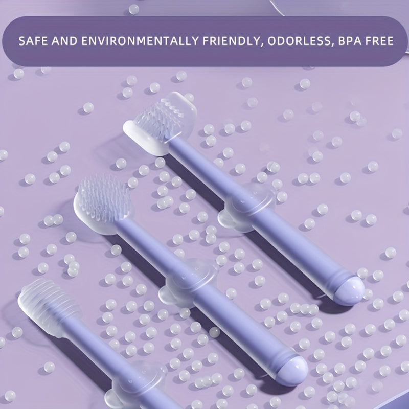 Набор из 3 силиконовых зубных щеток для детей - обеспечивает бережный уход за полостью рта, включает очиститель языка и мягкие щетинки для детей от 1 года и старше