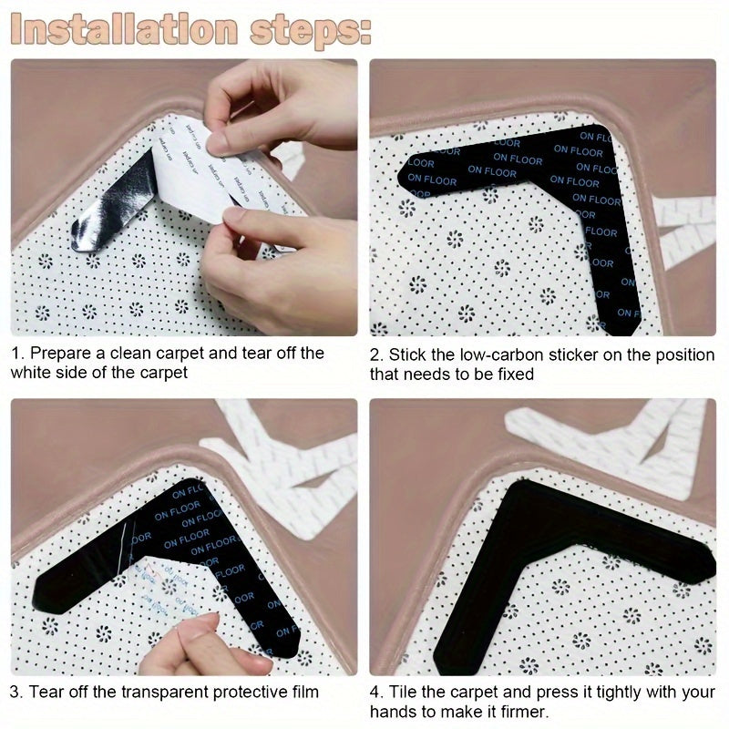 Набор из 4/8 высококачественных нескользящих наклеек для ковров, предотвращающих скольжение и скручивание ковров, идеально подходит для ковриков в гостиной, столовой и ванной комнате.