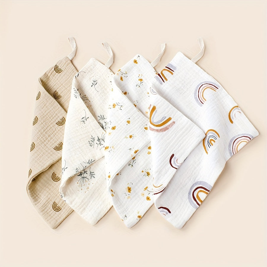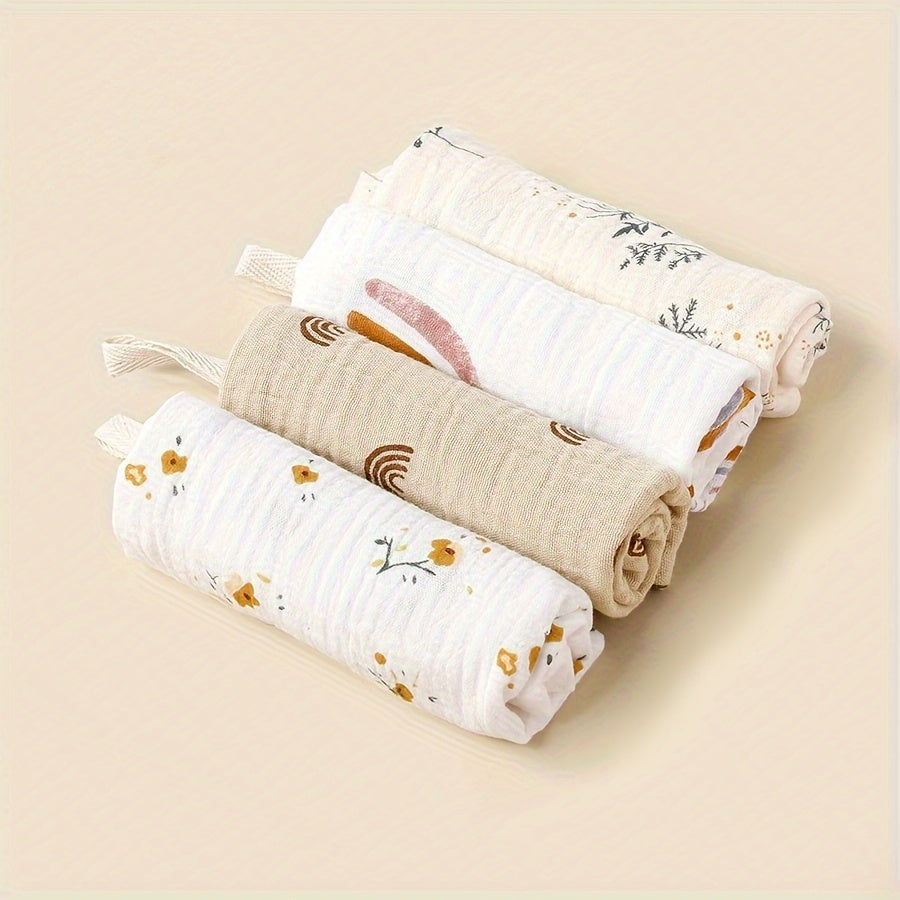 Набор из 4-х полотенец для рук Boobee из хлопкового муслина, 30,0x30,0 см, мягкая трикотажная ткань, милые дизайны, универсальные полотенца для ванной, отрыгивания, кормления, идеальный праздничный подарок на Хэллоуин, День благодарения, Рождество