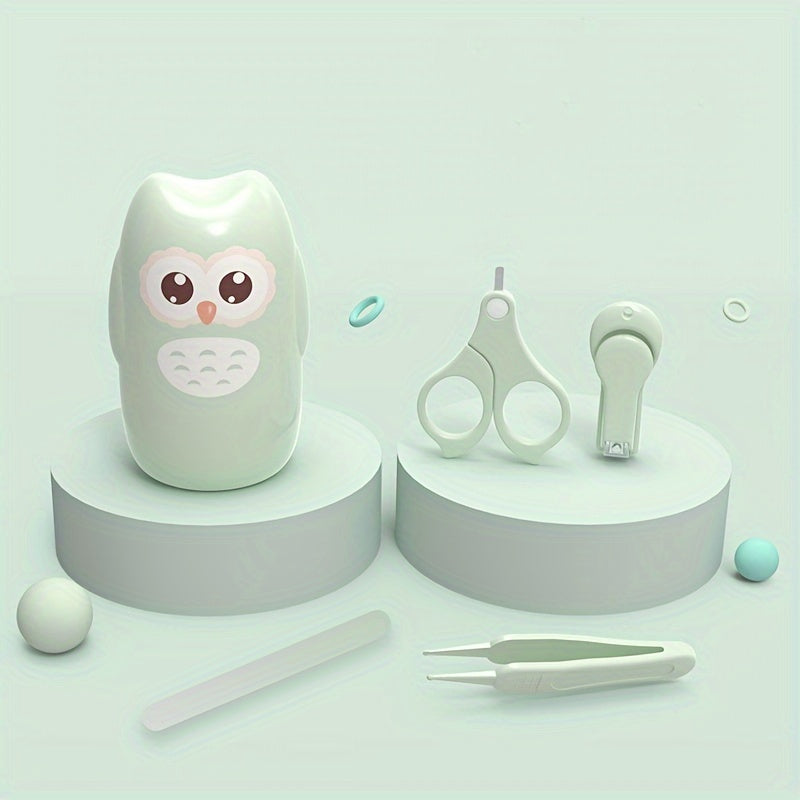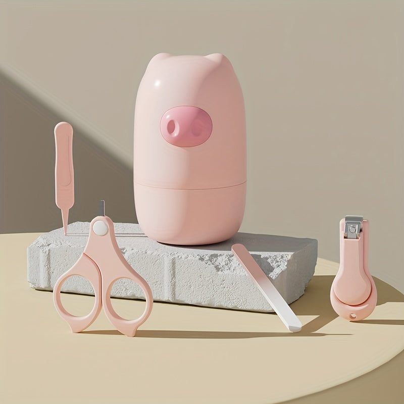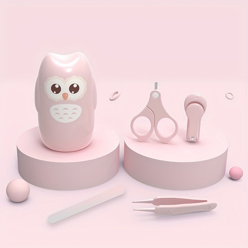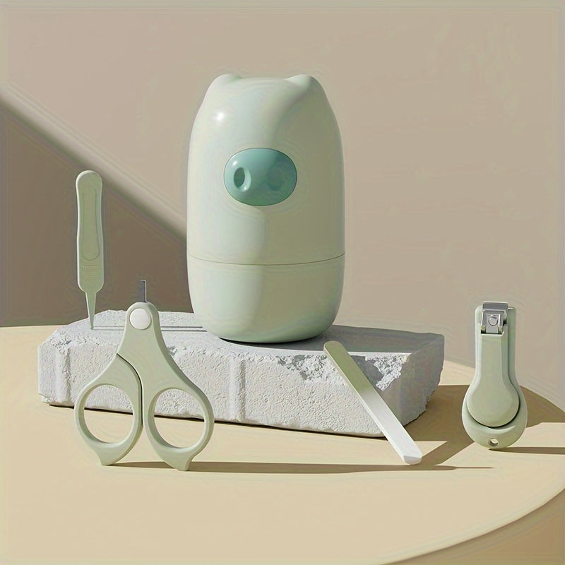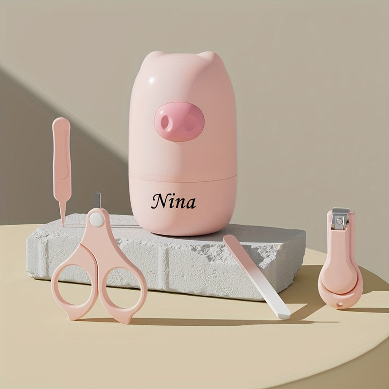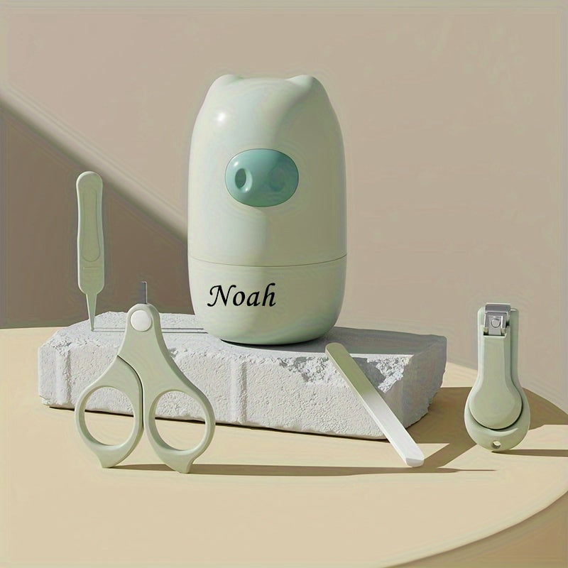 Набор из 4 настраиваемых ножниц для ногтей с персонализированными именами, выполненных из пластикового материала розового и зеленого цветов. Включает в себя набор для ухода за ногтями.