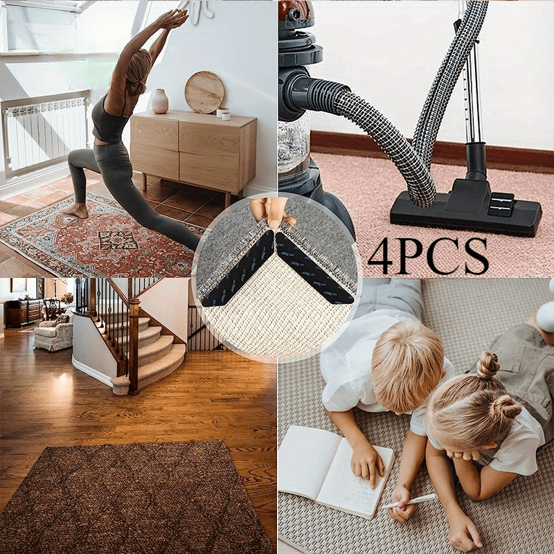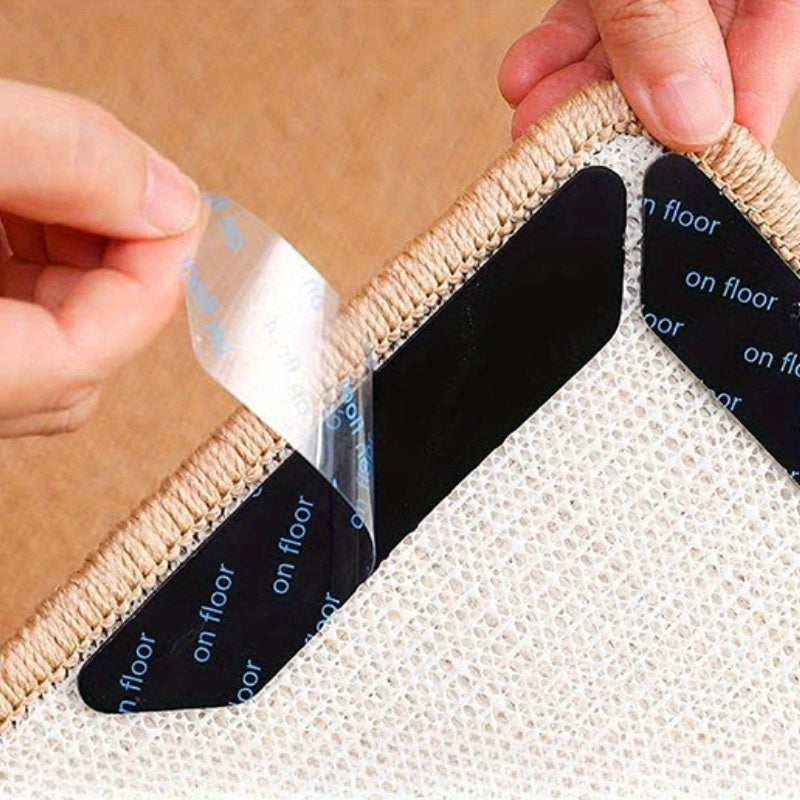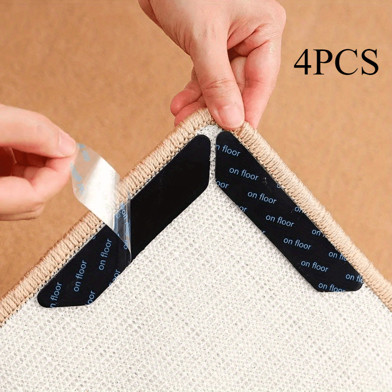 Набор из 4 моющихся противоскользящих липких лент для ковров, угловые накладки для ковров из ПЭТ, не оставляющий следов клейкий стабилизатор ковров для прихожих и комнат