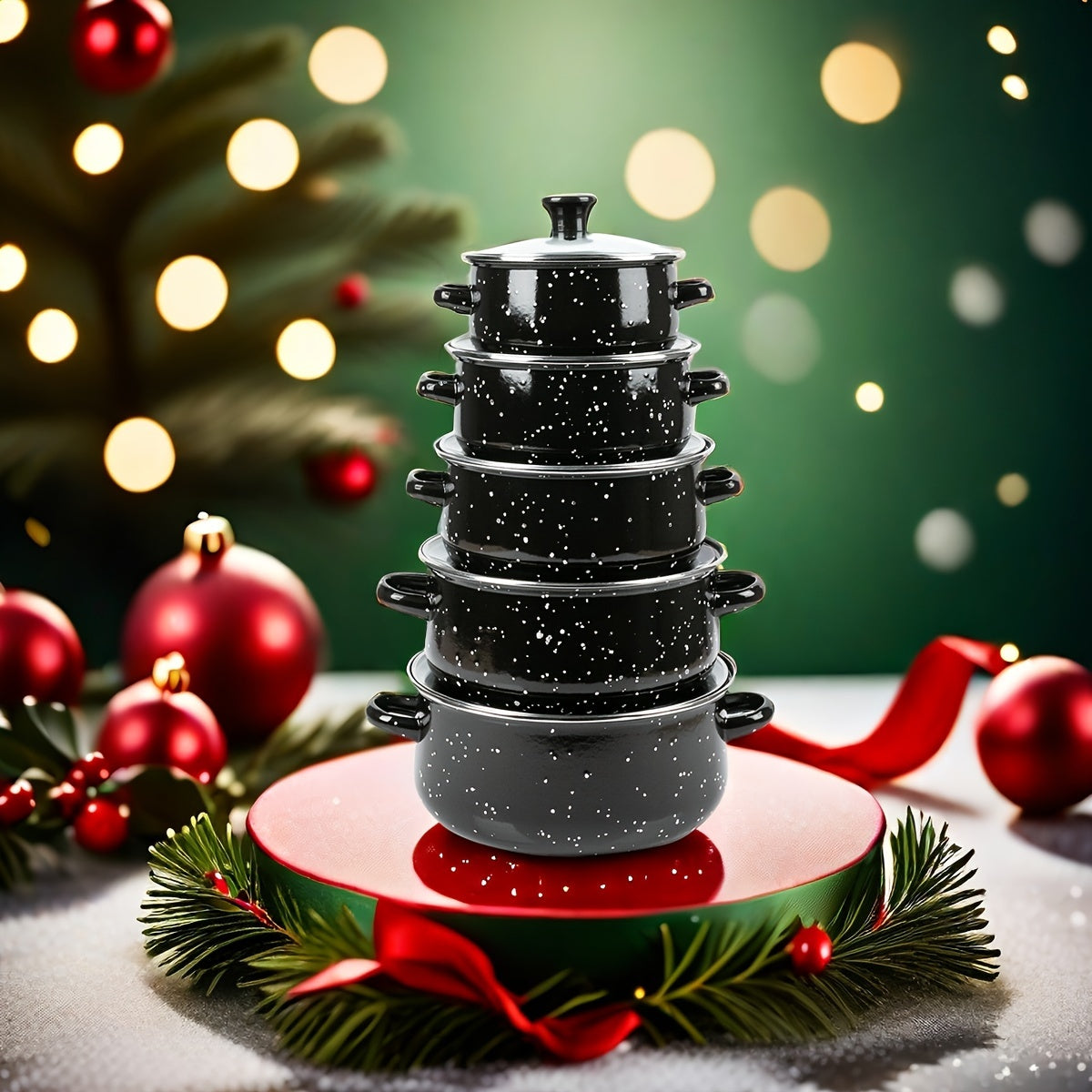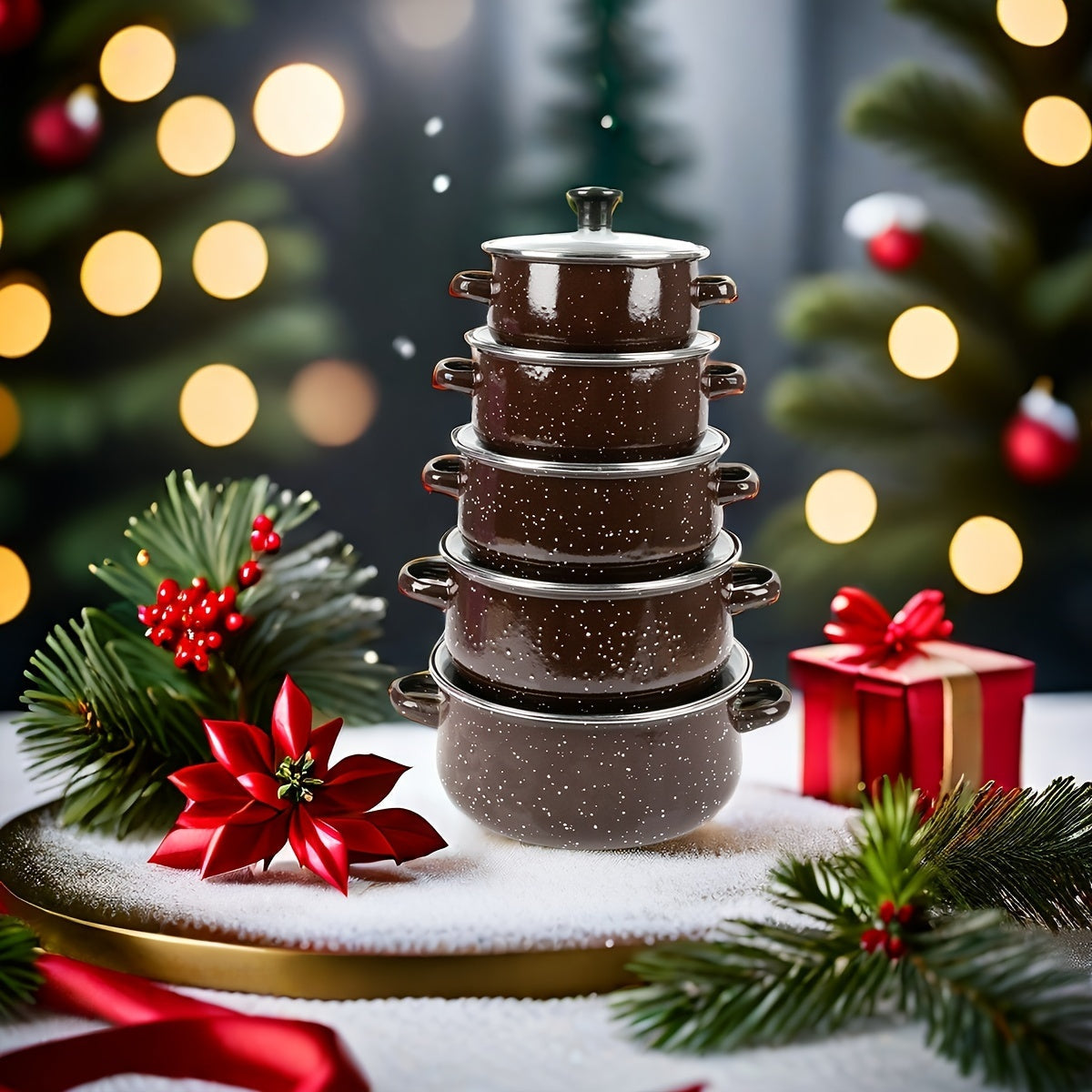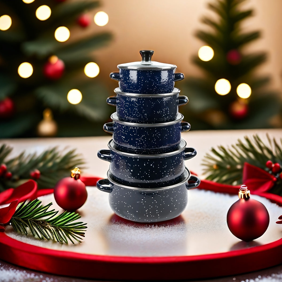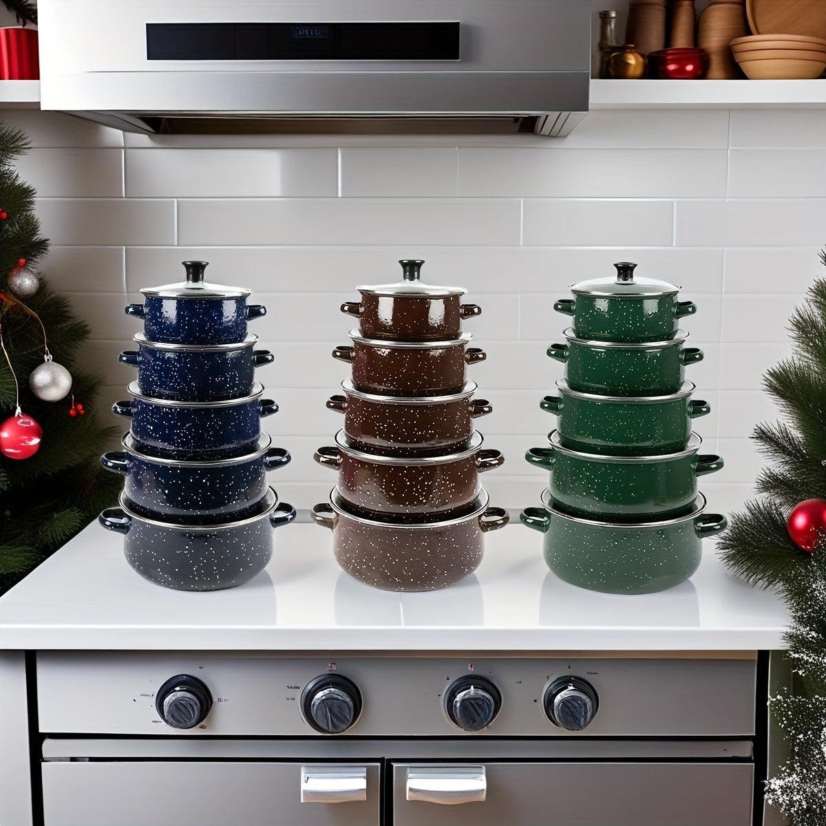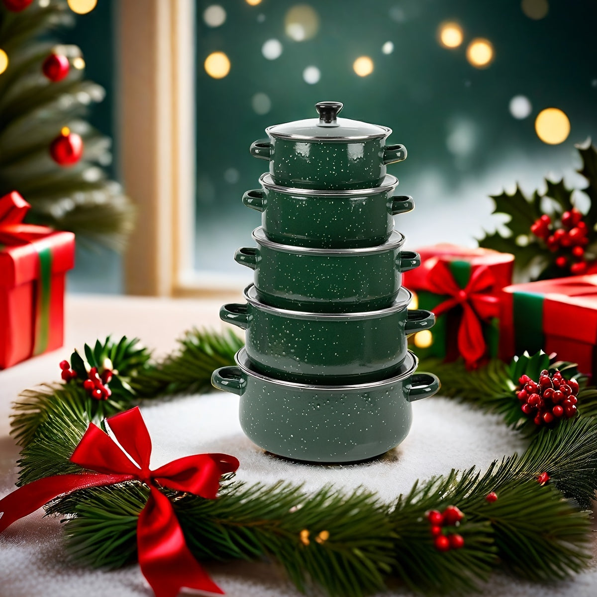 Набор из 5 эмалированных кухонных принадлежностей для Рождества - легкие, портативные и универсальные кастрюли для супов, рагу и многого другого - подходят для газовых и электрических плит - идеальны для домашних кухонь и ресторанов