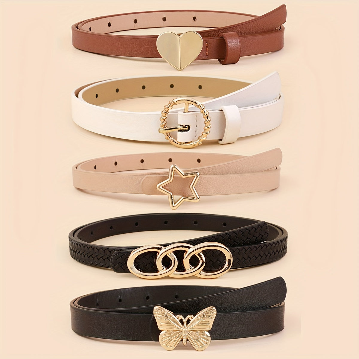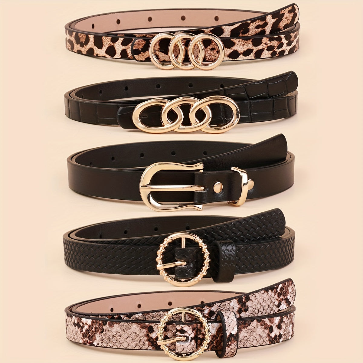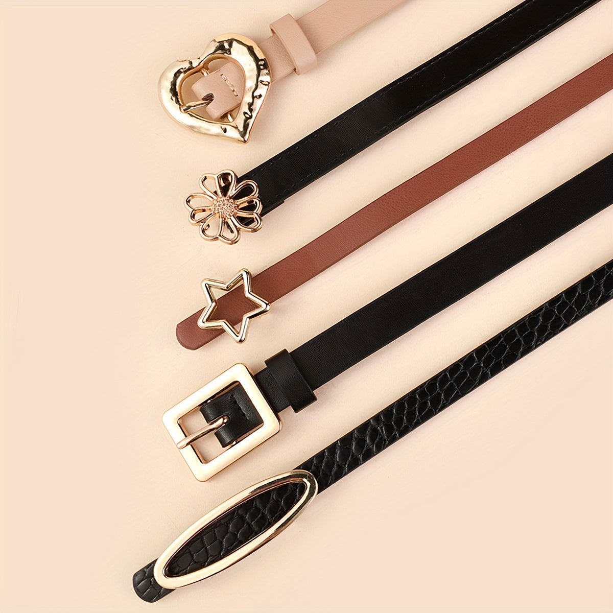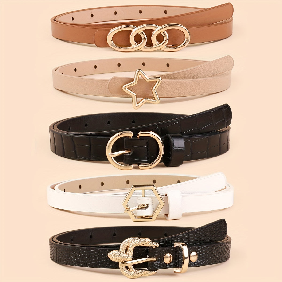 Набор из 5 женских тонких ремней из искусственной кожи в однотонных цветах для платьев и пальто