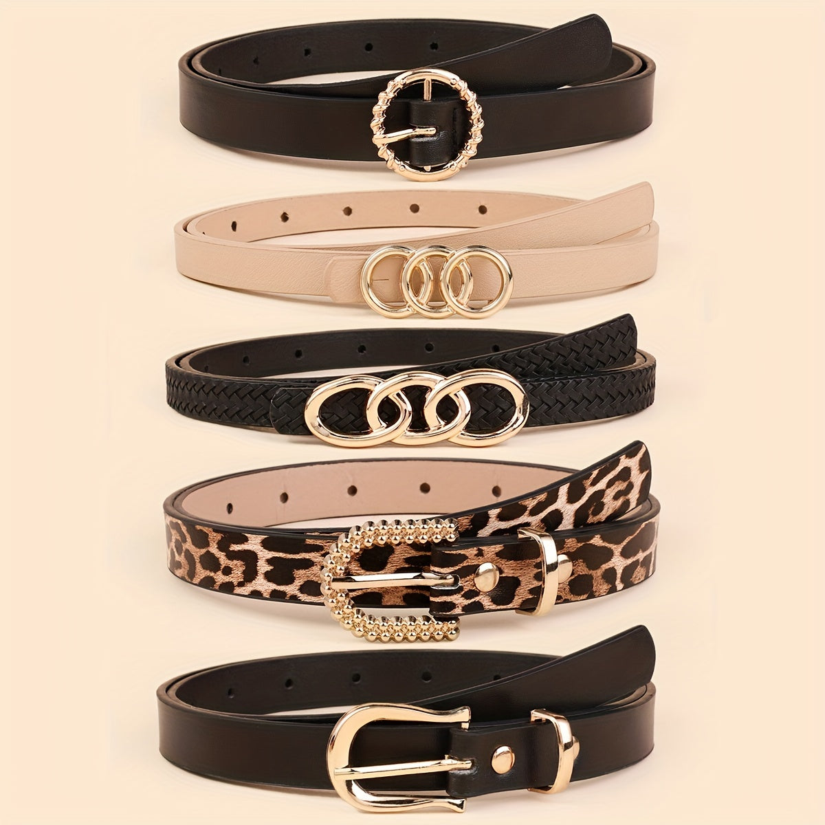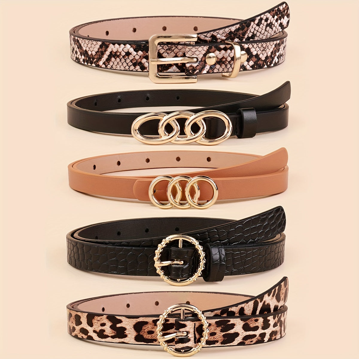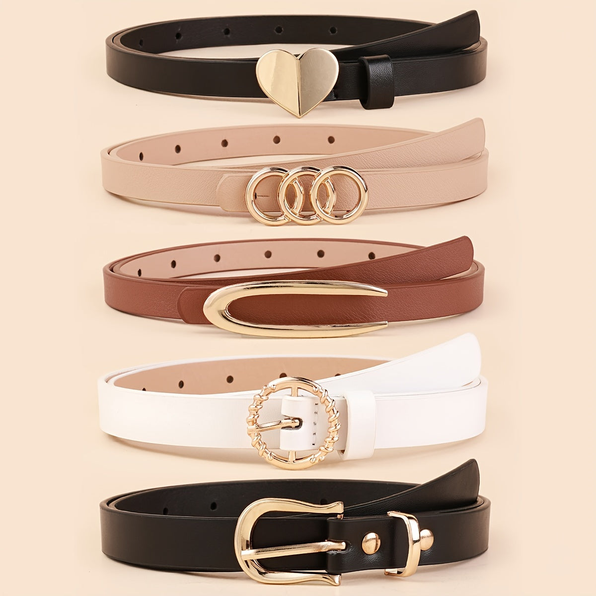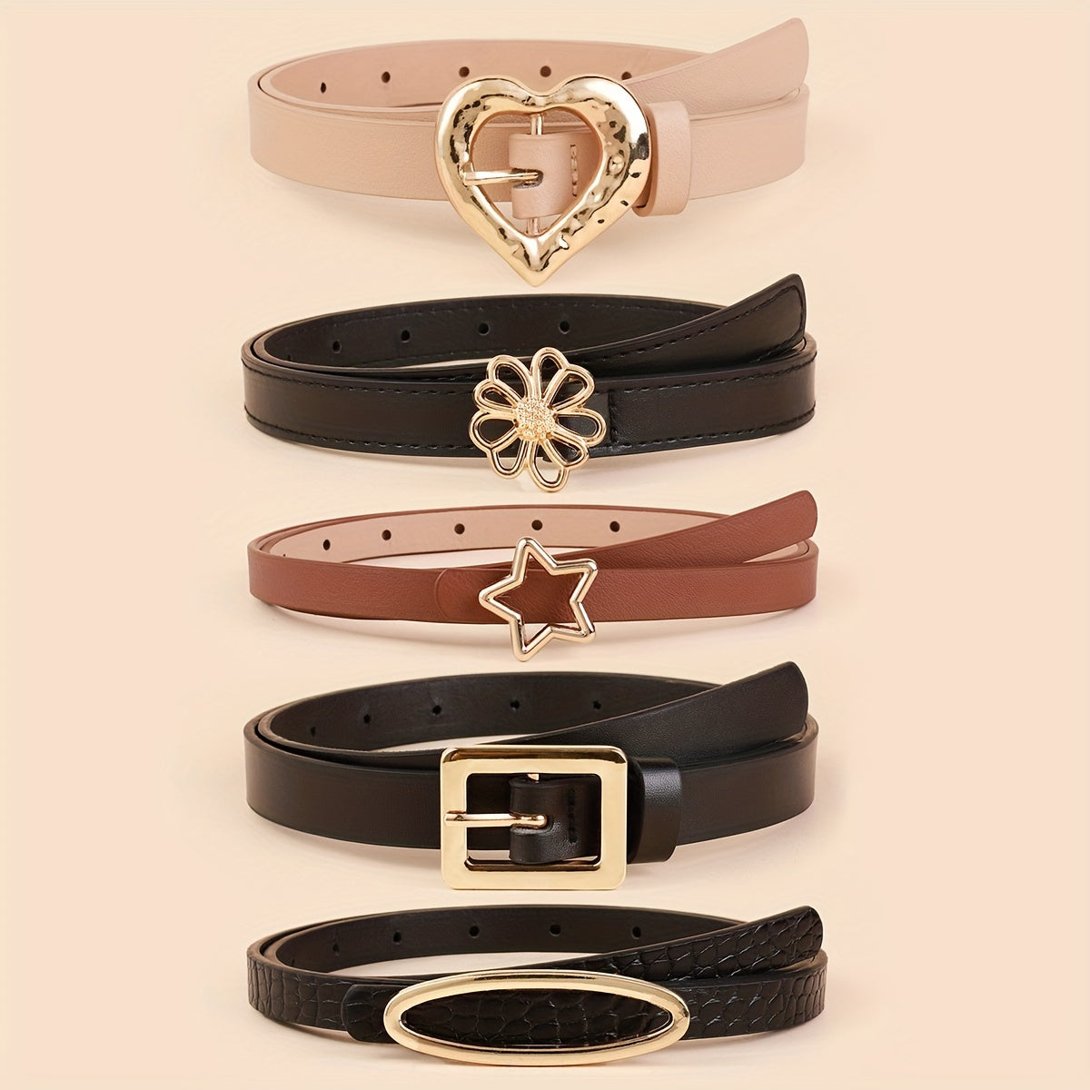 Набор из 5 женских тонких ремней из искусственной кожи в однотонных цветах для платьев и пальто