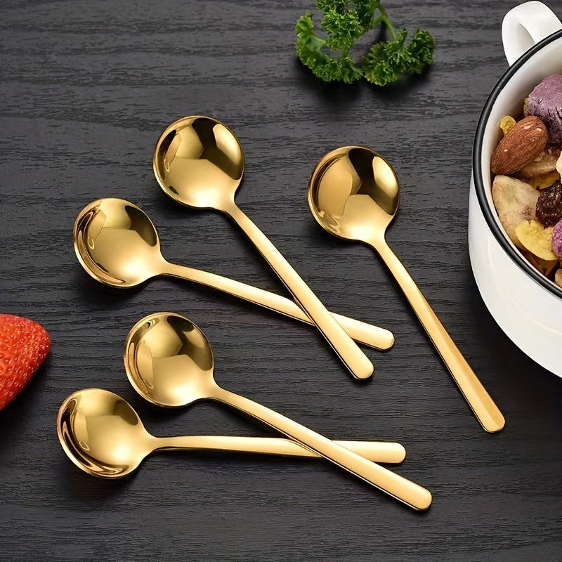 Набор из 5 небольших 10-сантиметровых ложек для приправ, изготовленных из нержавеющей стали марки 304, идеально подходит для банок с приправами или в качестве подарка, также можно использовать в качестве кофейных ложек.