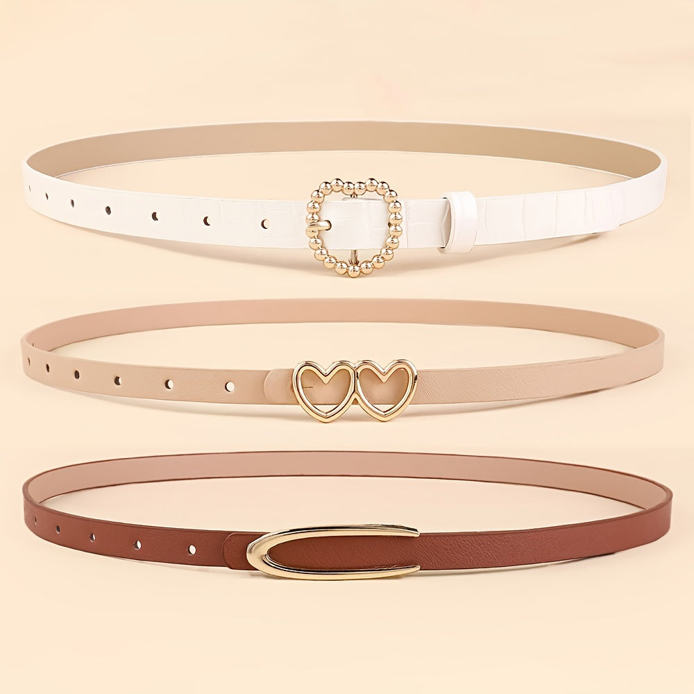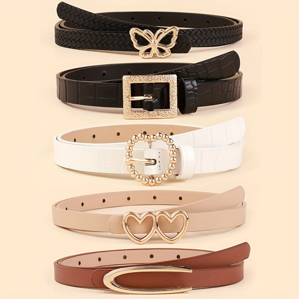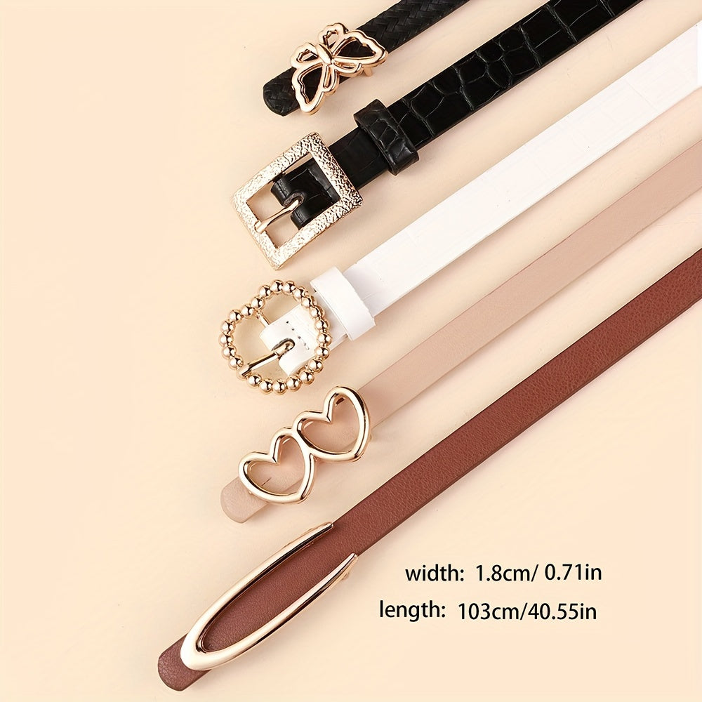 Набор из 5 женских маленьких ремней с металлическими пряжками, стильных и универсальных