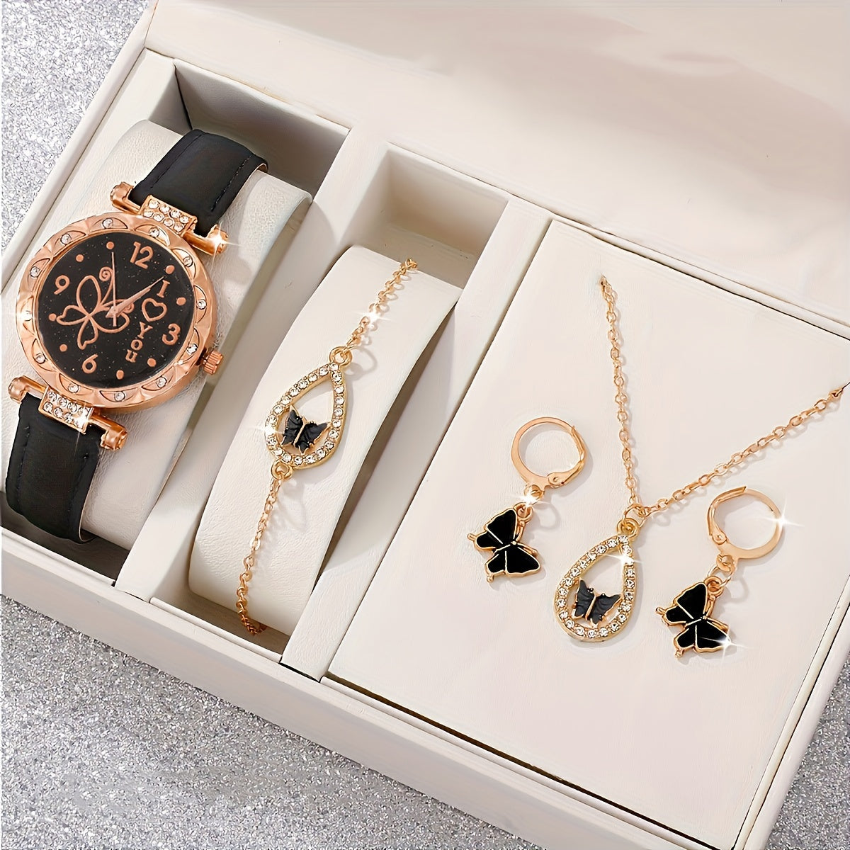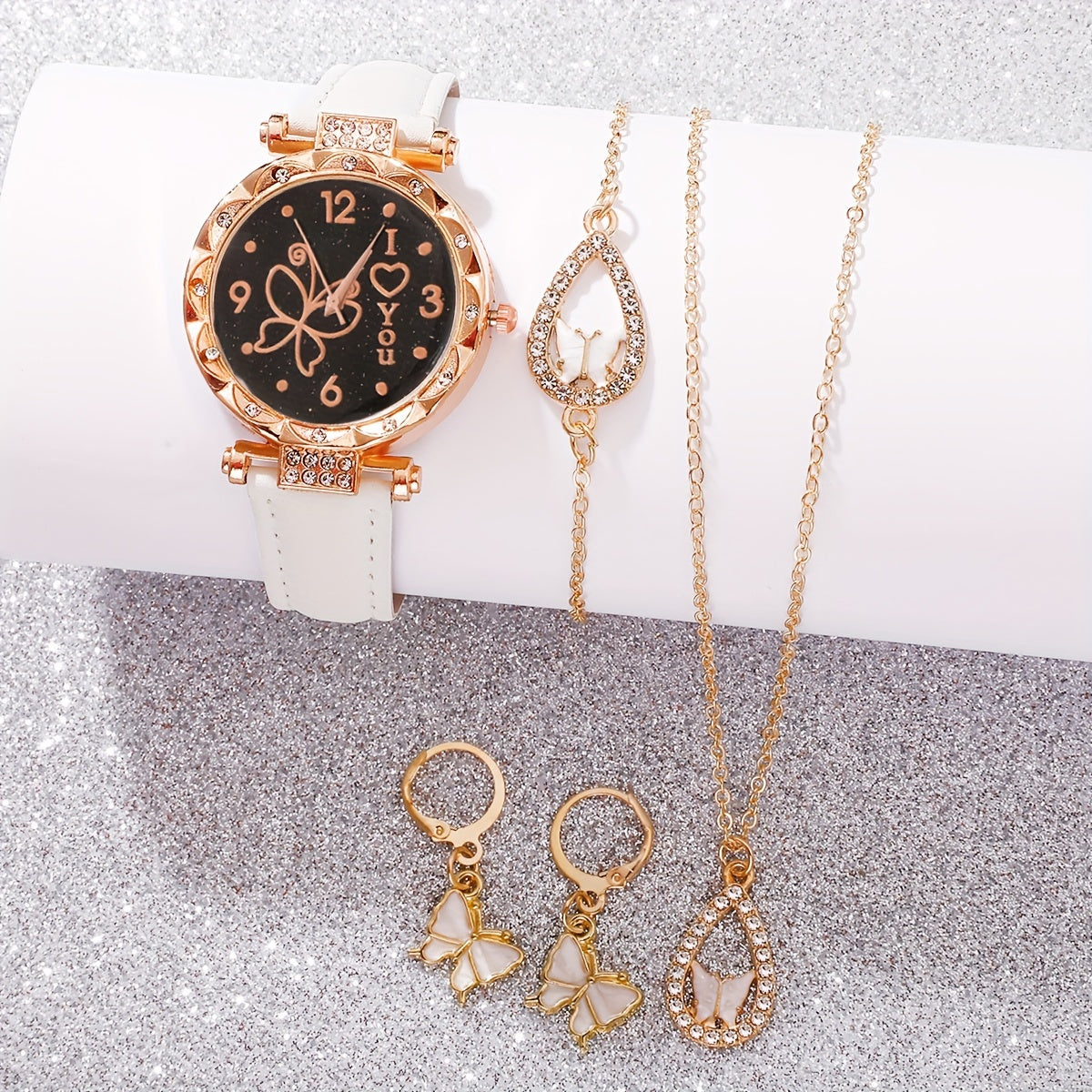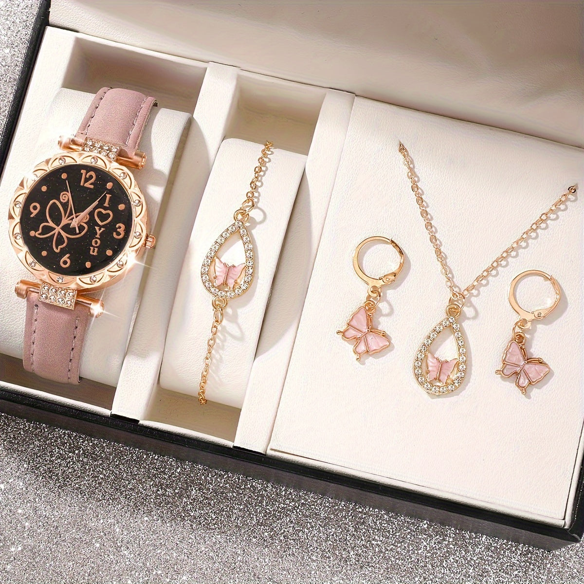 Набор из 5 женских кварцевых часов с дизайном из страз и бабочками