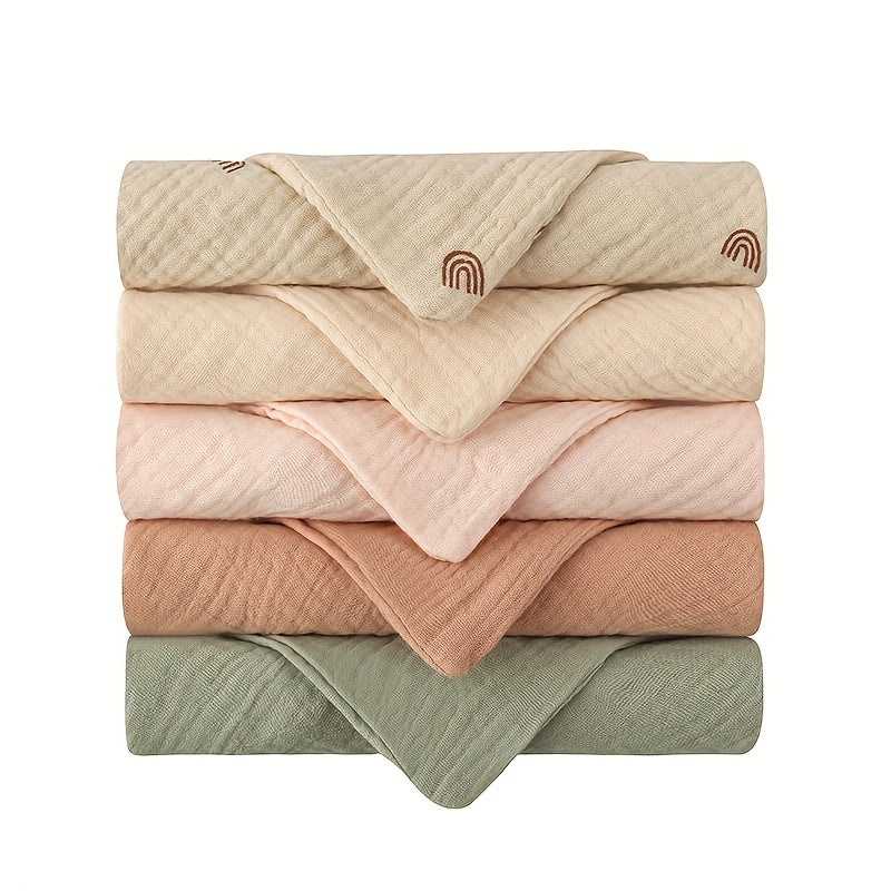 Набор из 5 муслиновых пеленок Youngsters 100% - 4 слоя гипоаллергенных полотенец для лица, успокаивающих слюну - Пеленки размером 22.86x22.86 см - Необходимы для детей - Идеально подходят для мальчиков и девочек (случайные цвета)