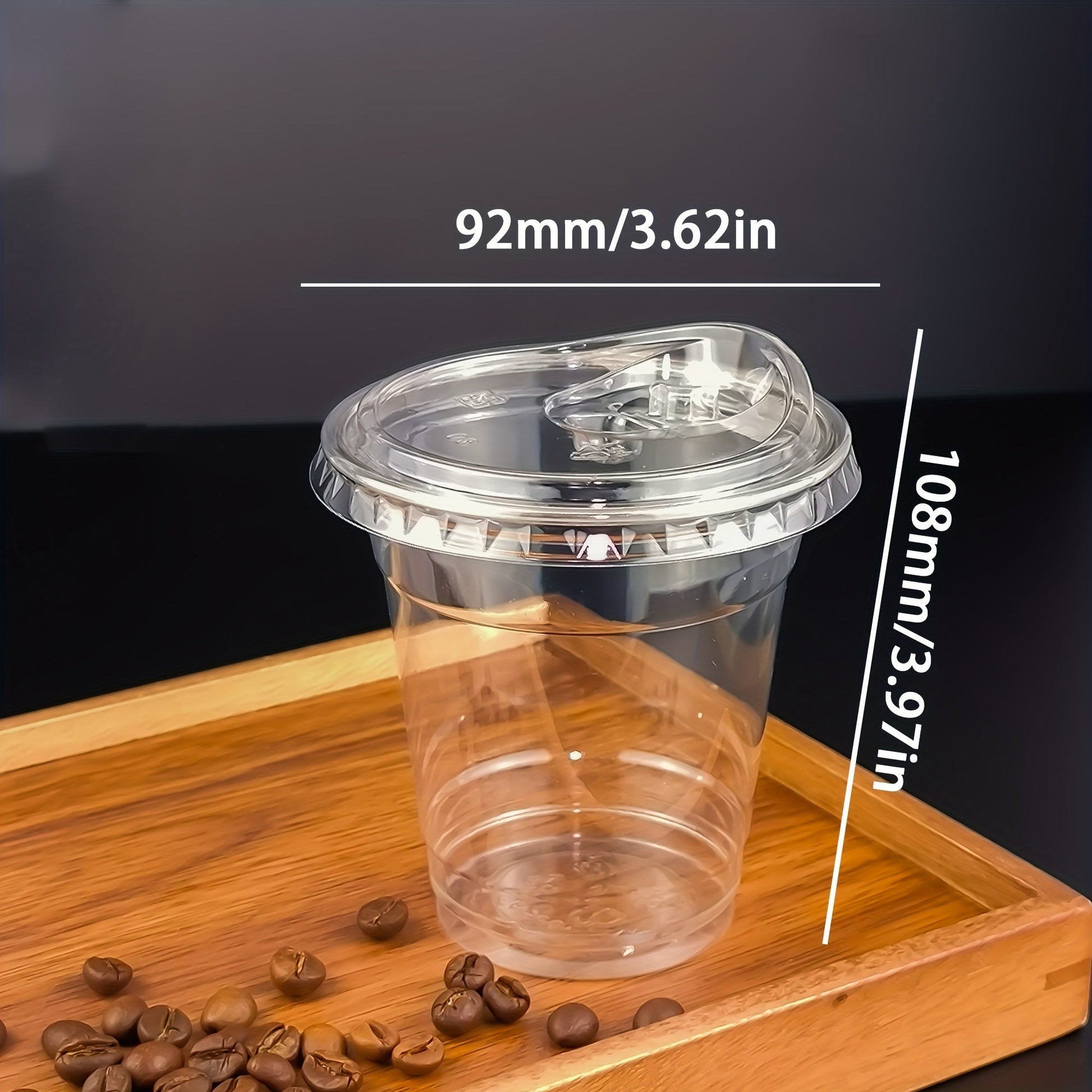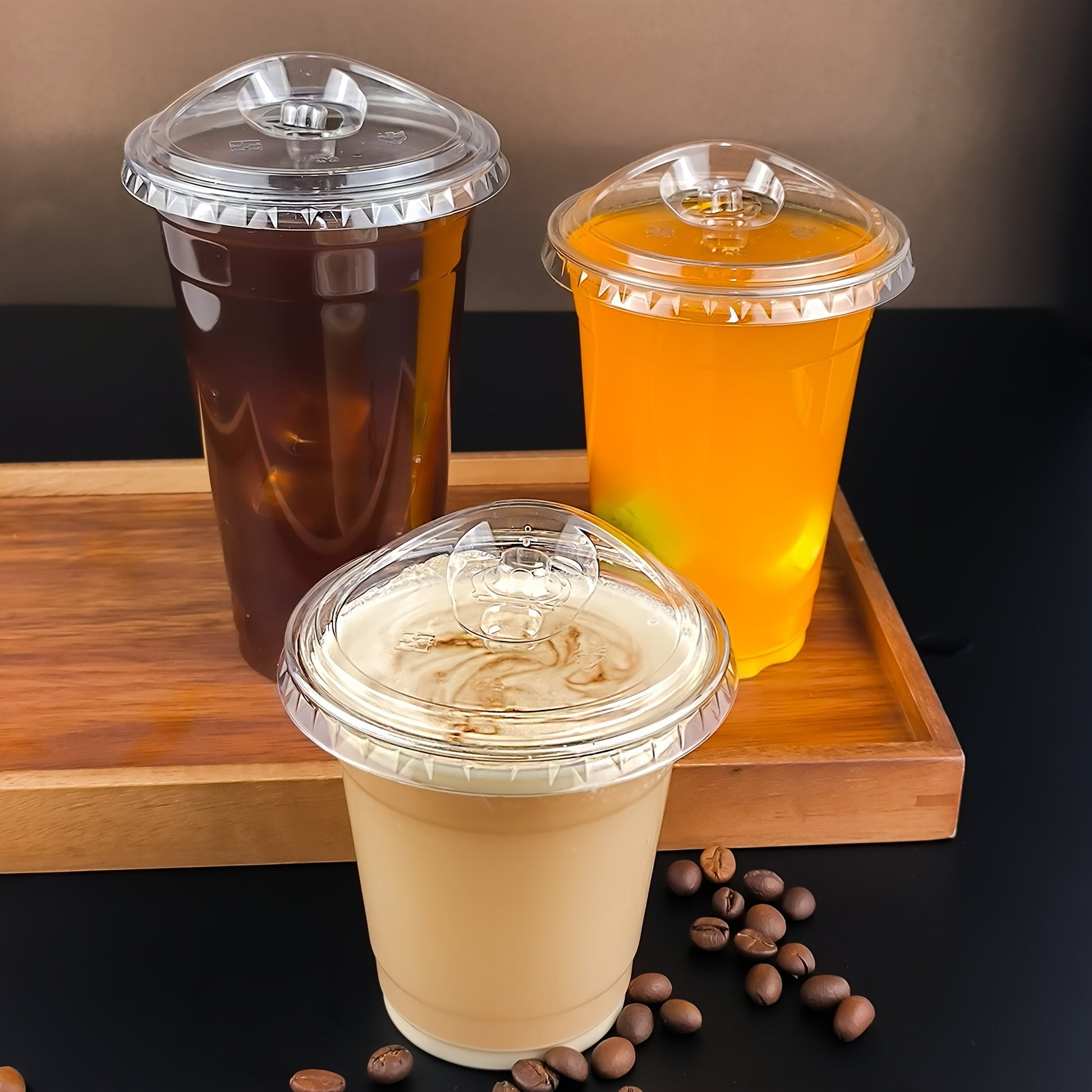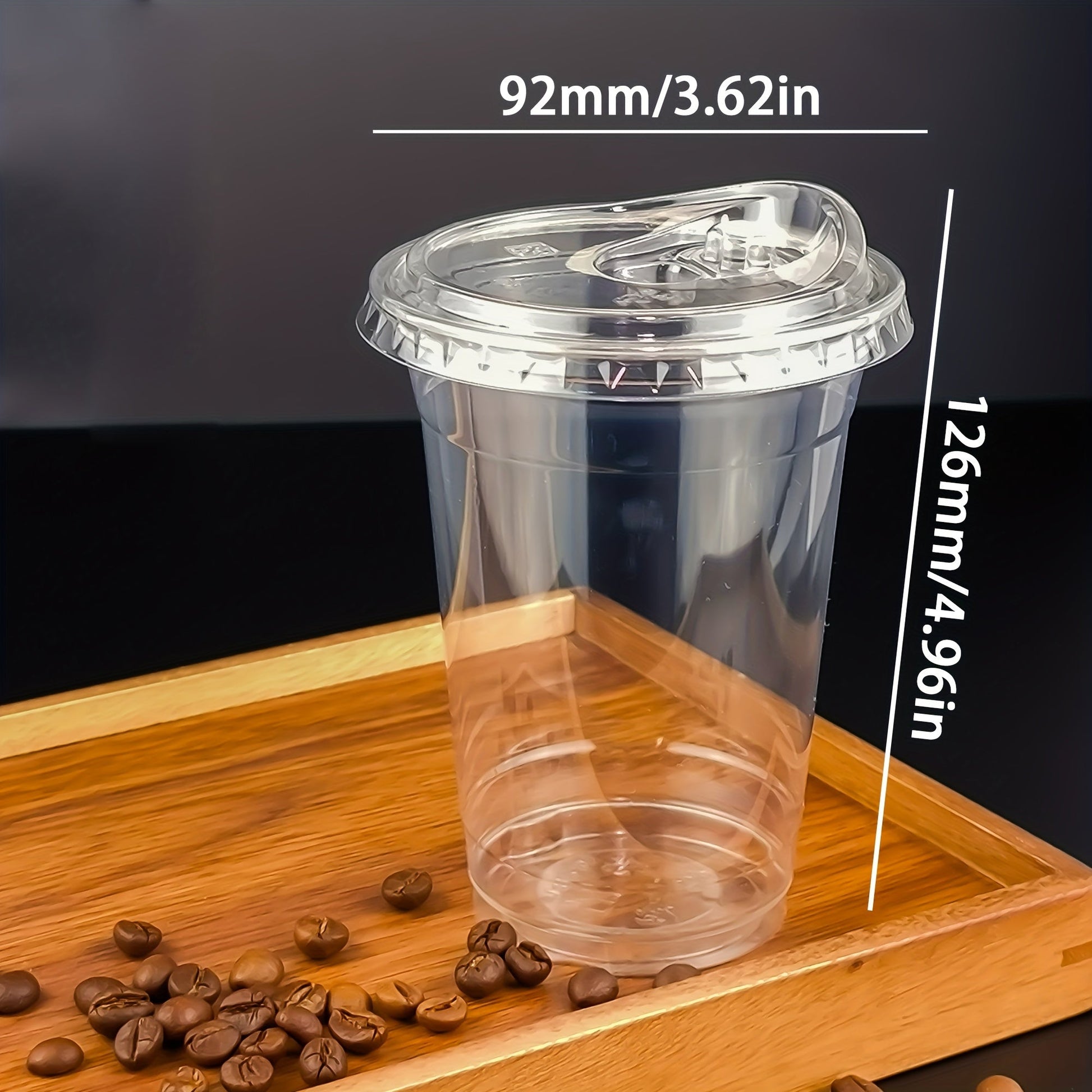 Набор из 50 одноразовых кофейных чашек с крышками, изготовленных из прозрачного пластика без BPA - Отлично подходит для вечеринок, праздников и свадеб - Доступны в различных размерах (9oz/10oz/14oz/16oz) - Идеально для холодных напитков